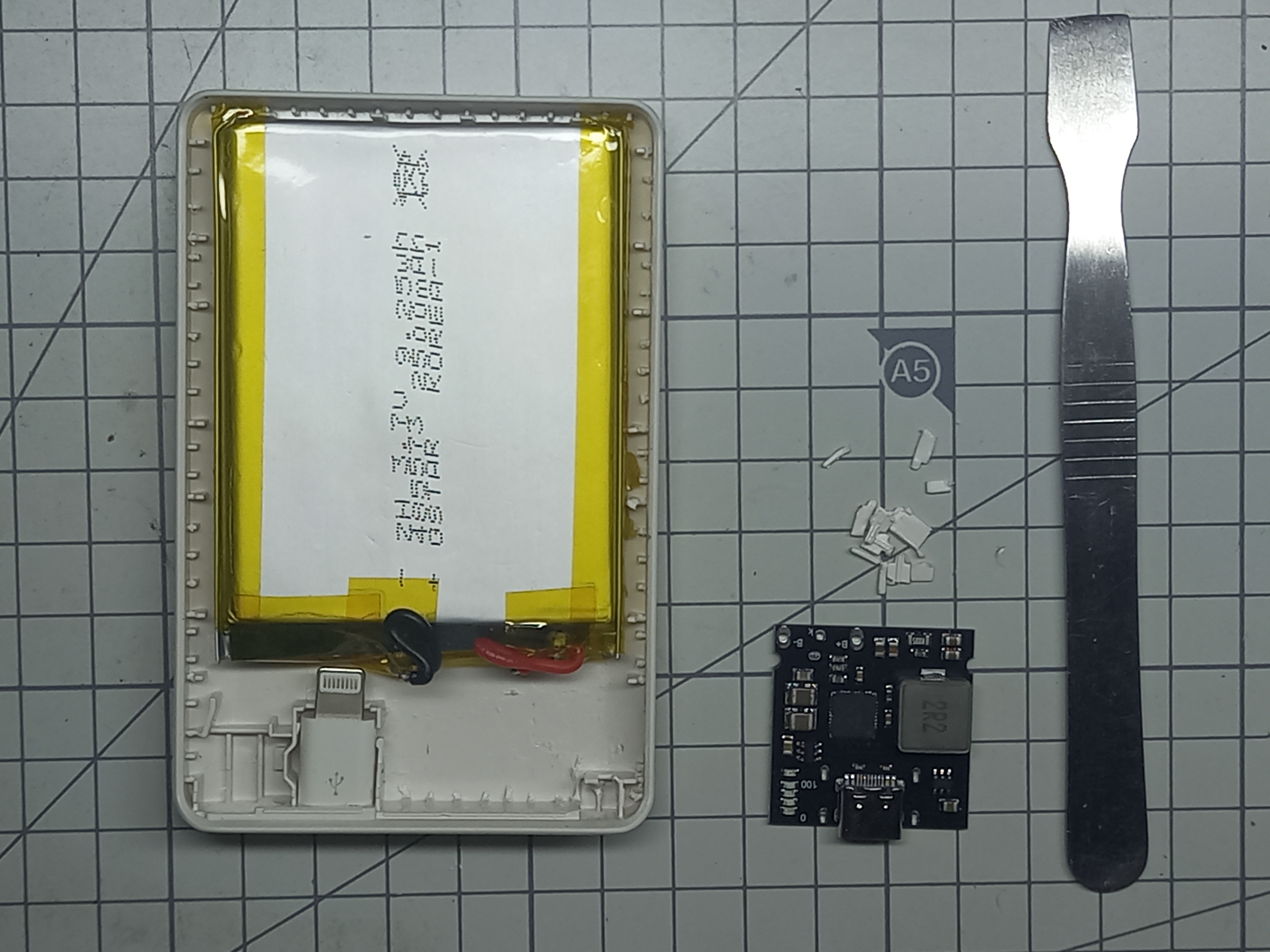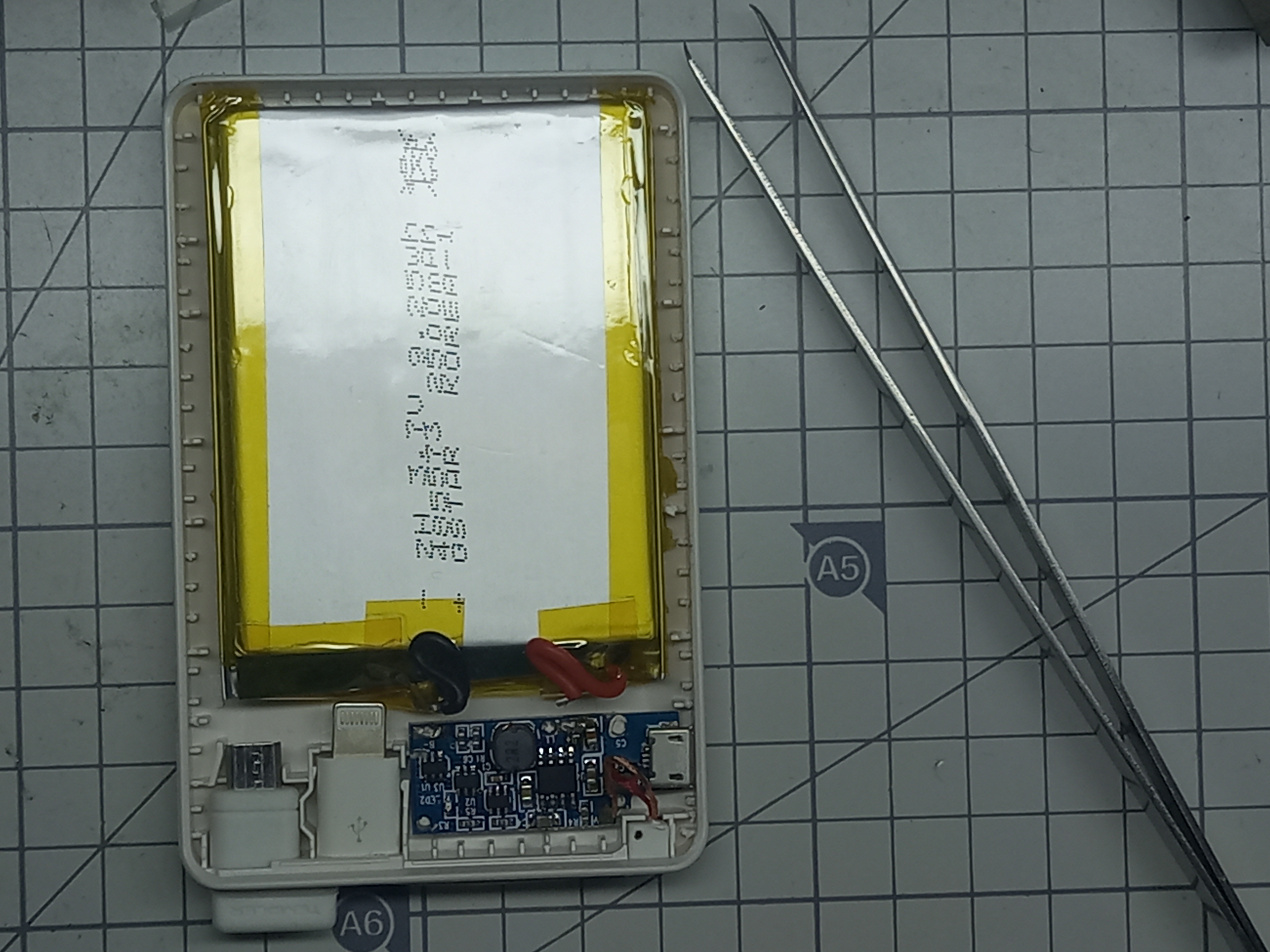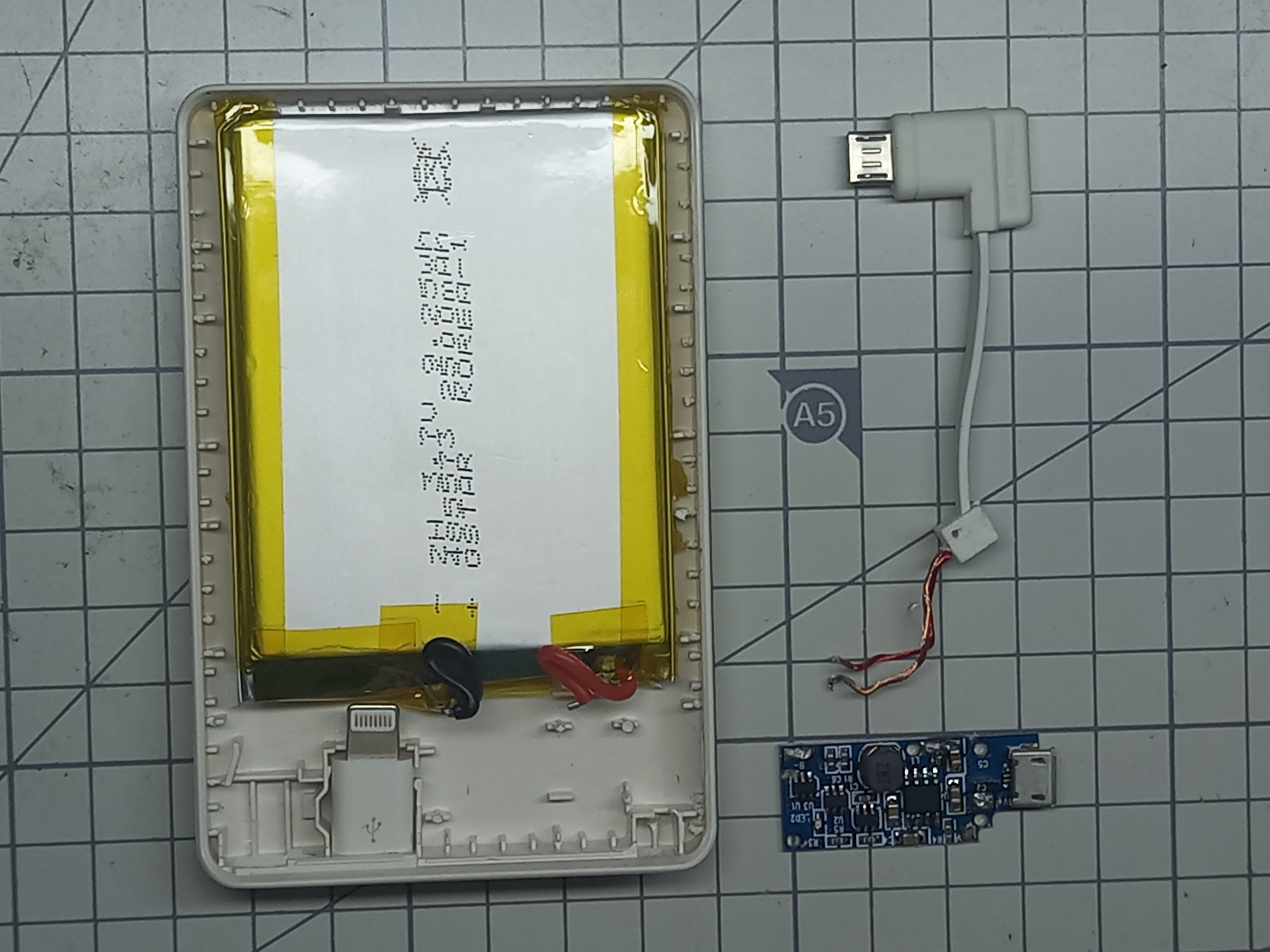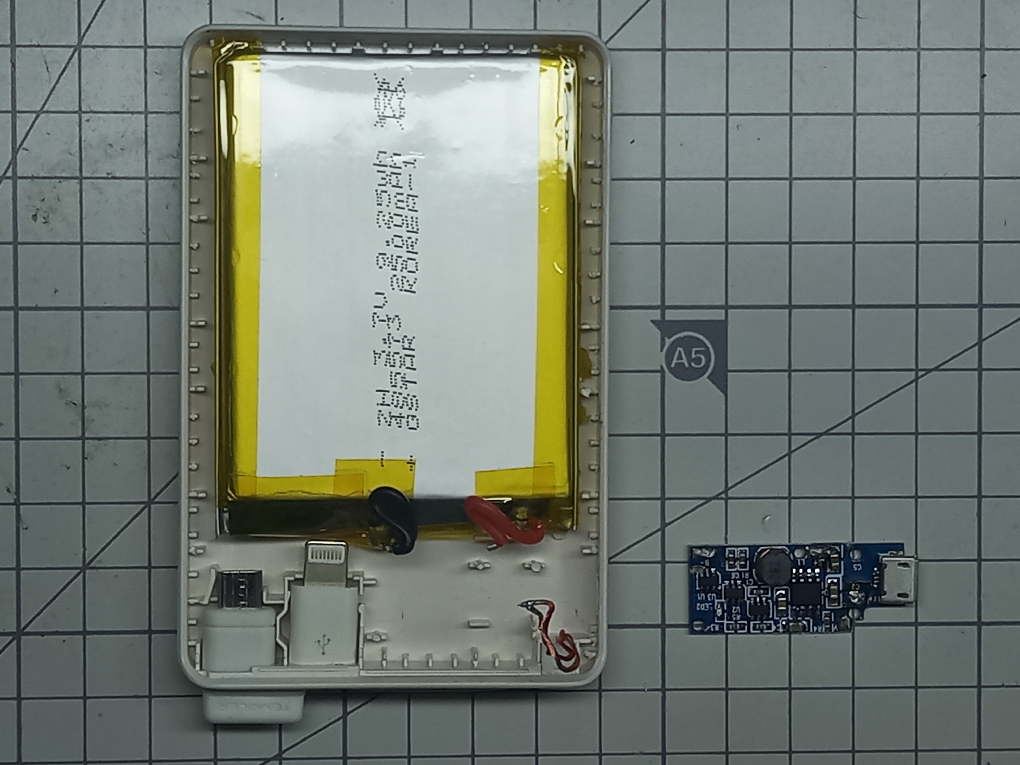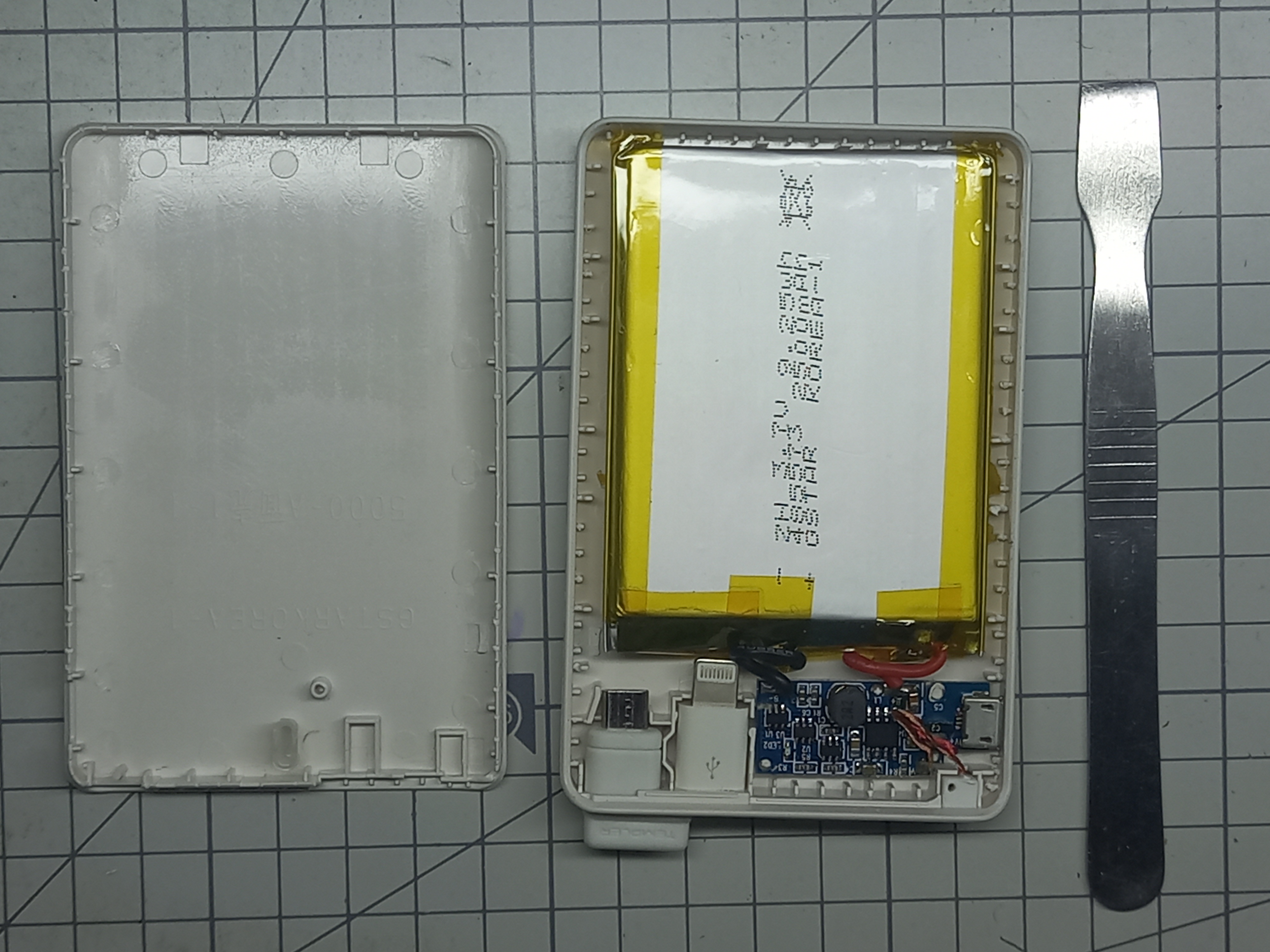 아래 사진과 같이 5000mAh 보조배터리의 케이스를 열어줍니다
