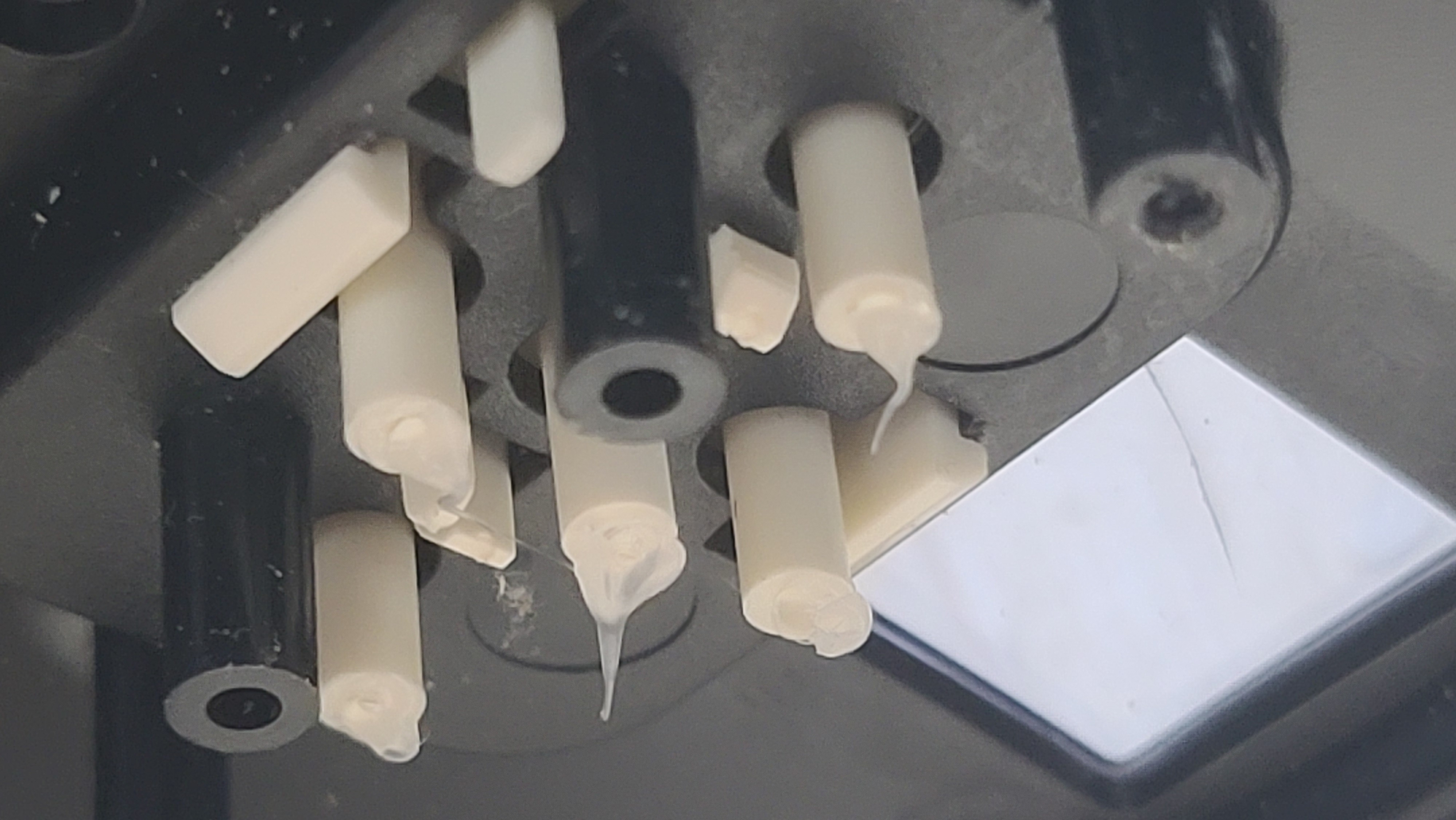 아래 사진과 같이 무선글루건을 사용하여 플라스틱 버튼 부품의 높이를 맞춰 주었습니다