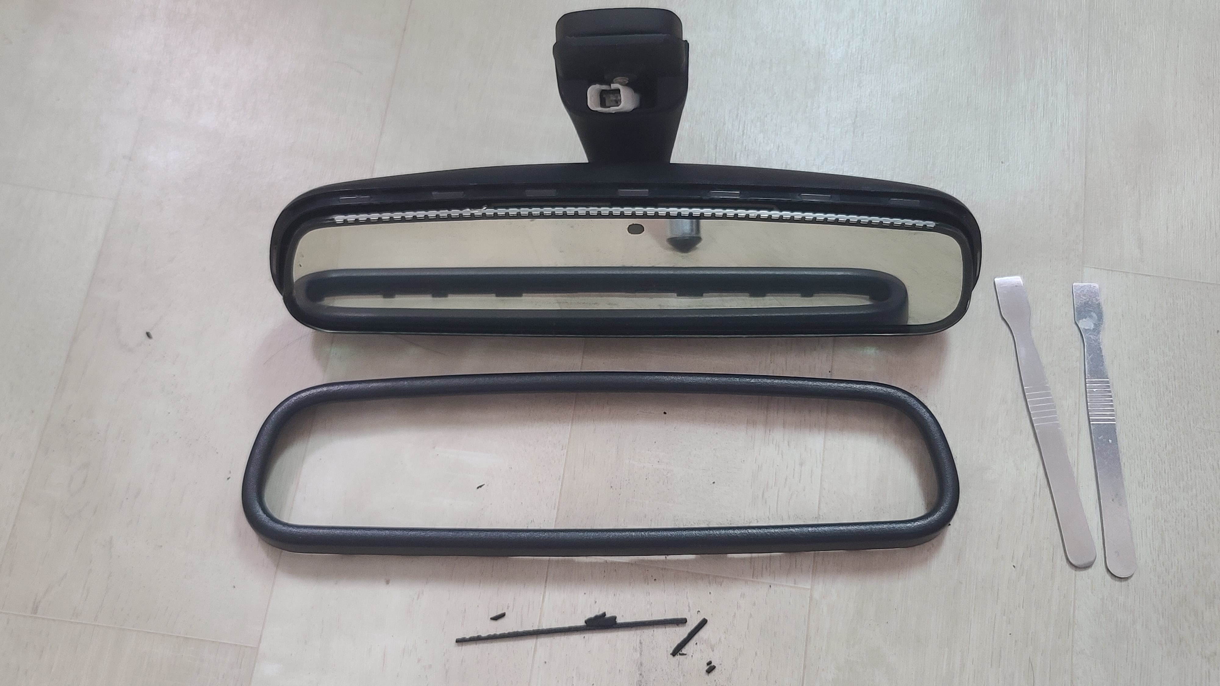 분리한 룸미러를 집으로 가져와서 편하게 작업합니다