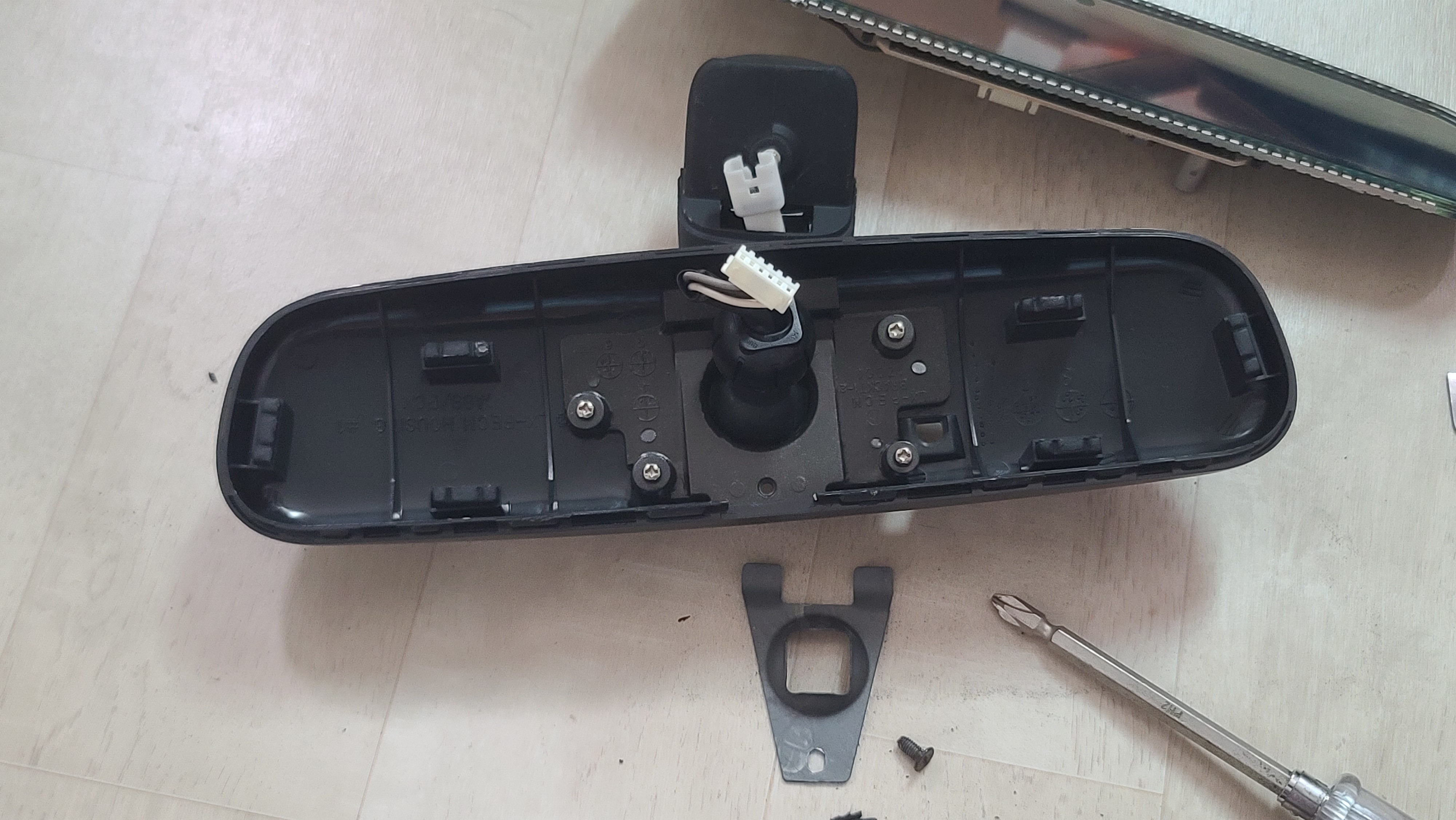 거울의 뒷면에 PCB와 연결된 커넥터가 보입니다