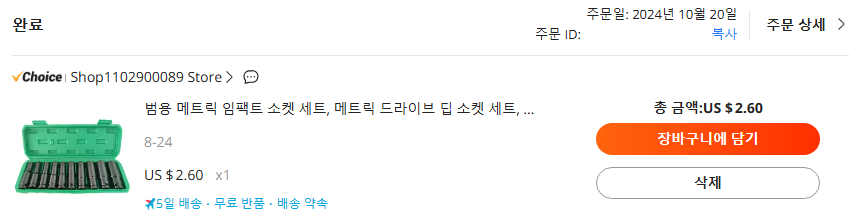 아래와 같이 2.6$에 8, 10, 12, 13, 14, 16, 17, 19, 22, 24mm 의 10개 1/2 규격의 롱복스알 세트를 구입했습니다