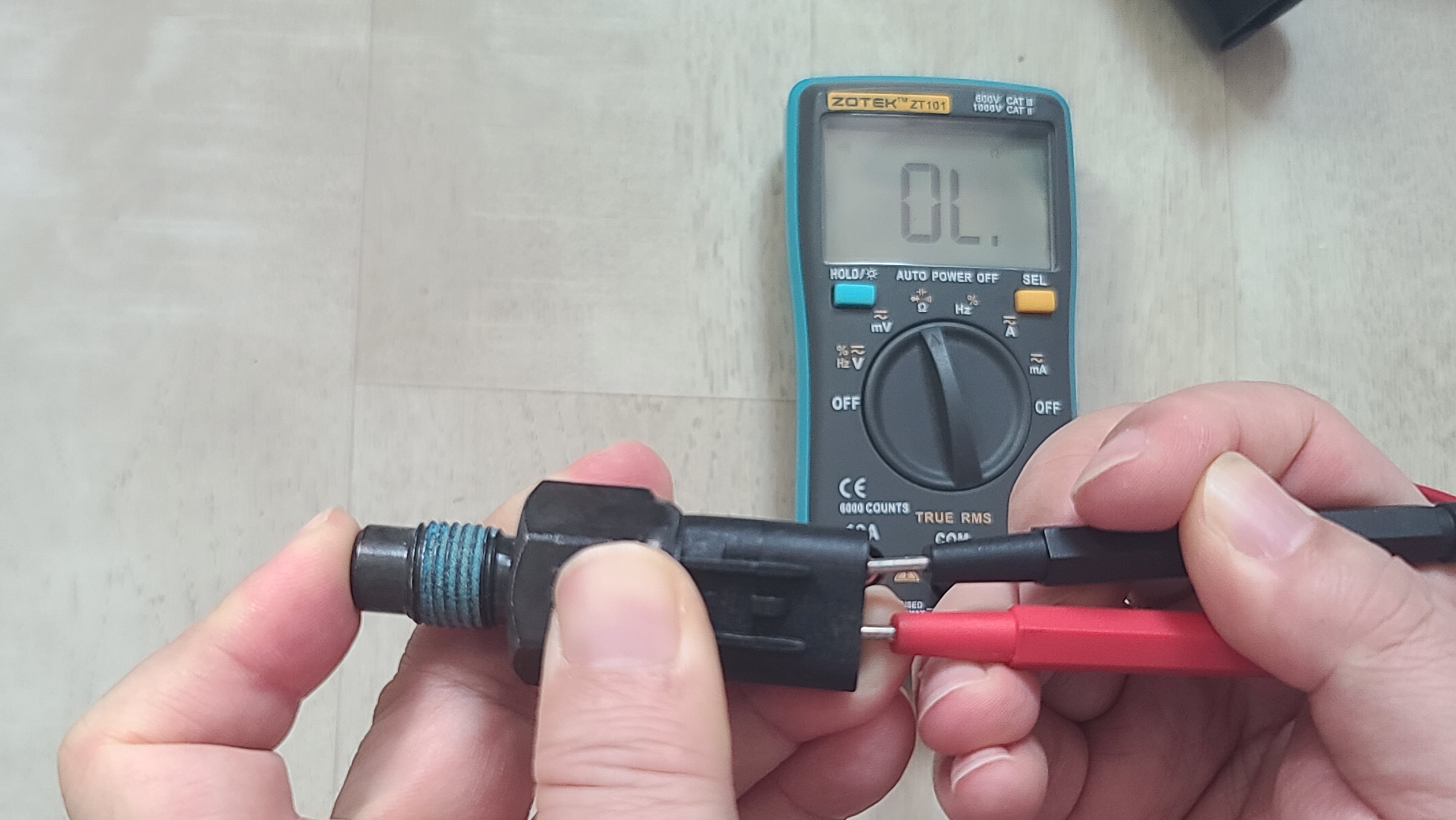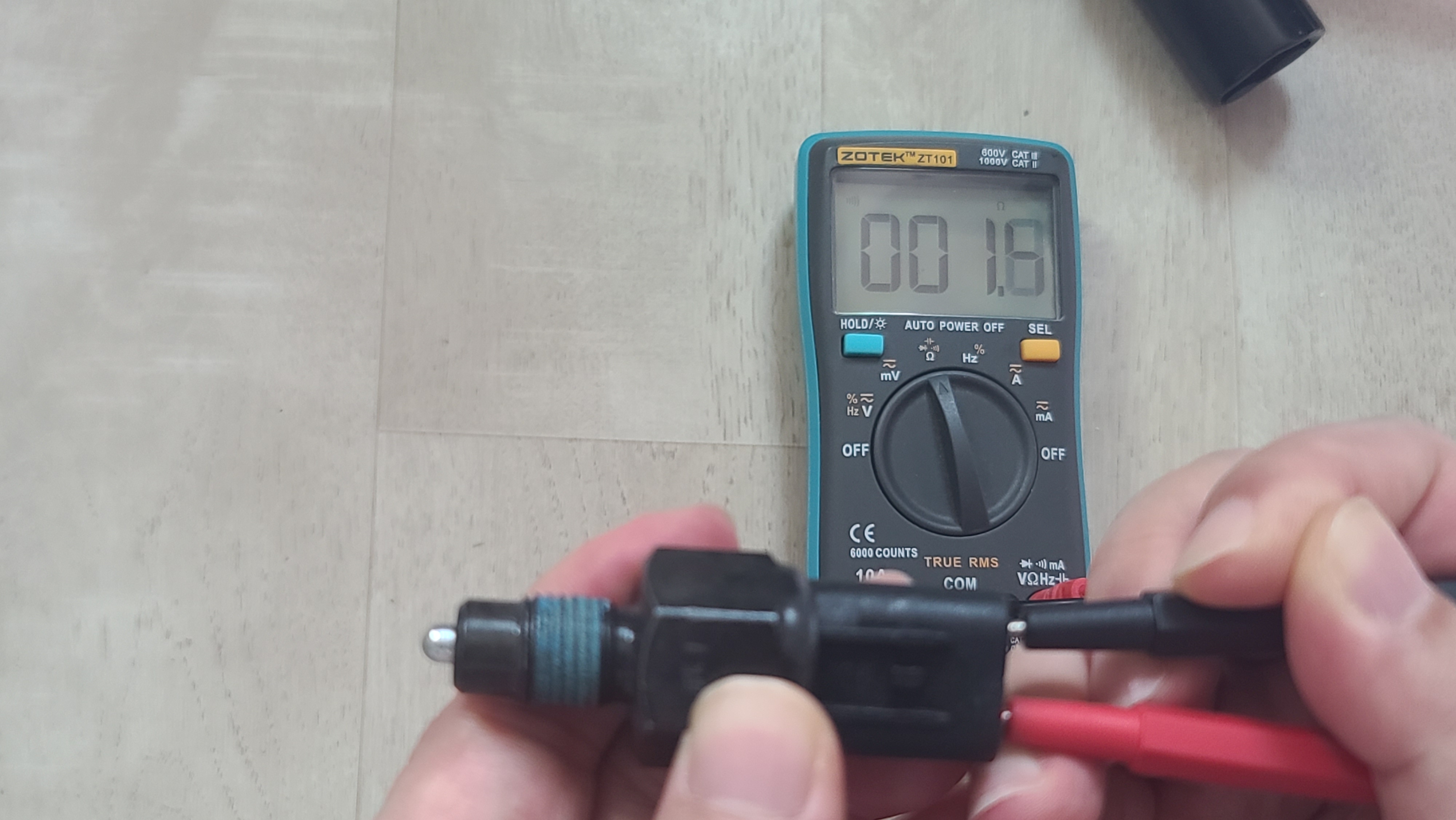 아래 사진과 같이 커넥터의 2개 단자 저항을 측정해보니