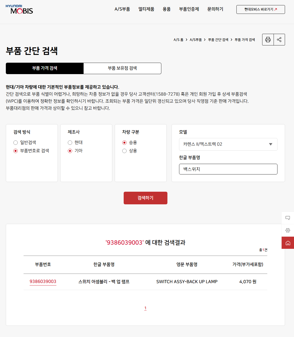 현대모비스 부품검색 : 부품 가격 검색 | 현대모비스 A/S부품 용품 (mobis-as.com)