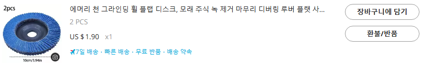 천원마트에서 구입한 그라인더 패드는 아래와 같이 1.9$에 2개를 구입했네요