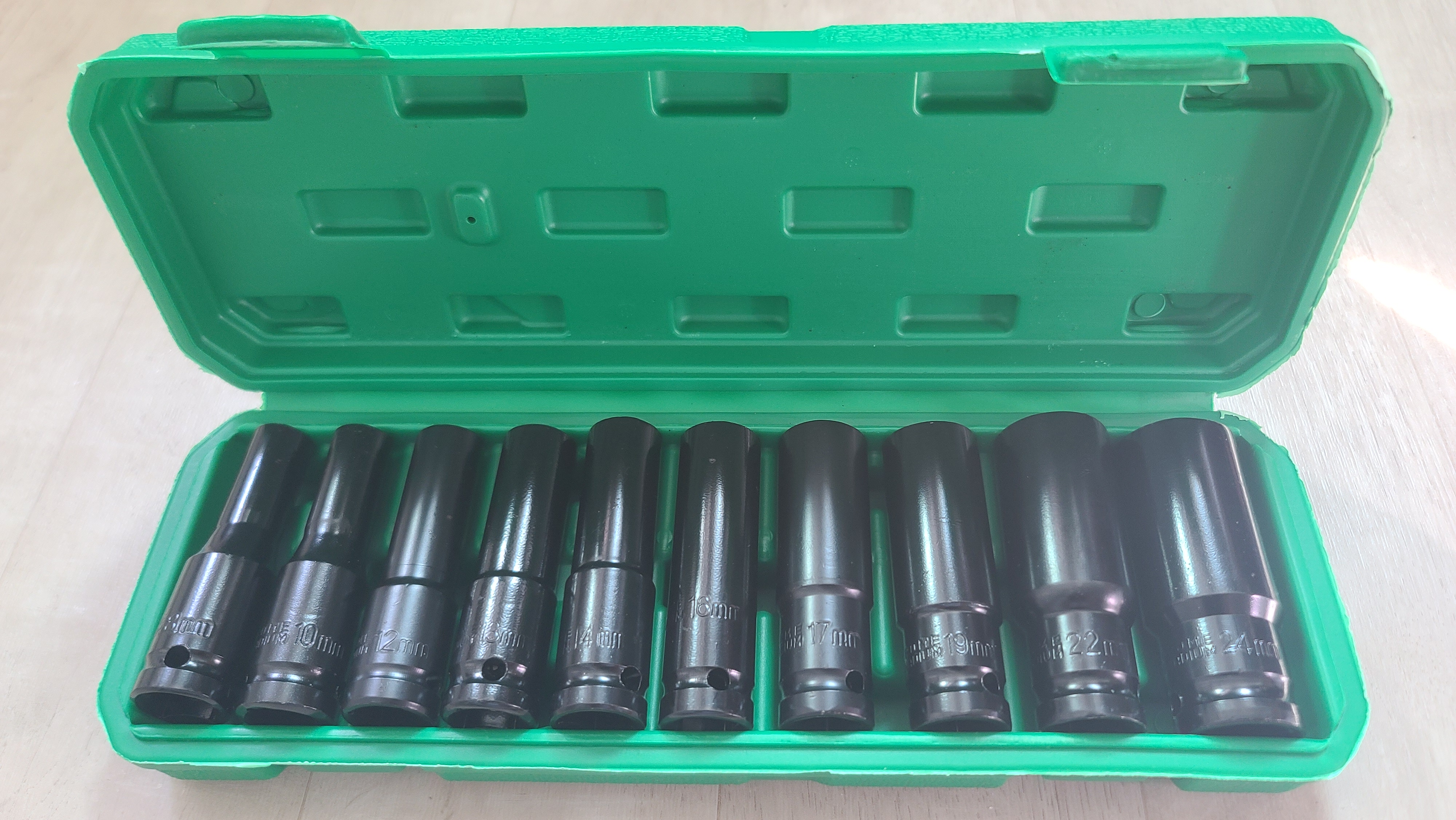 열어보니 8, 10, 12, 13, 14, 16, 17, 19, 22, 24mm의 롱복스알이 잘 들어 있습니다