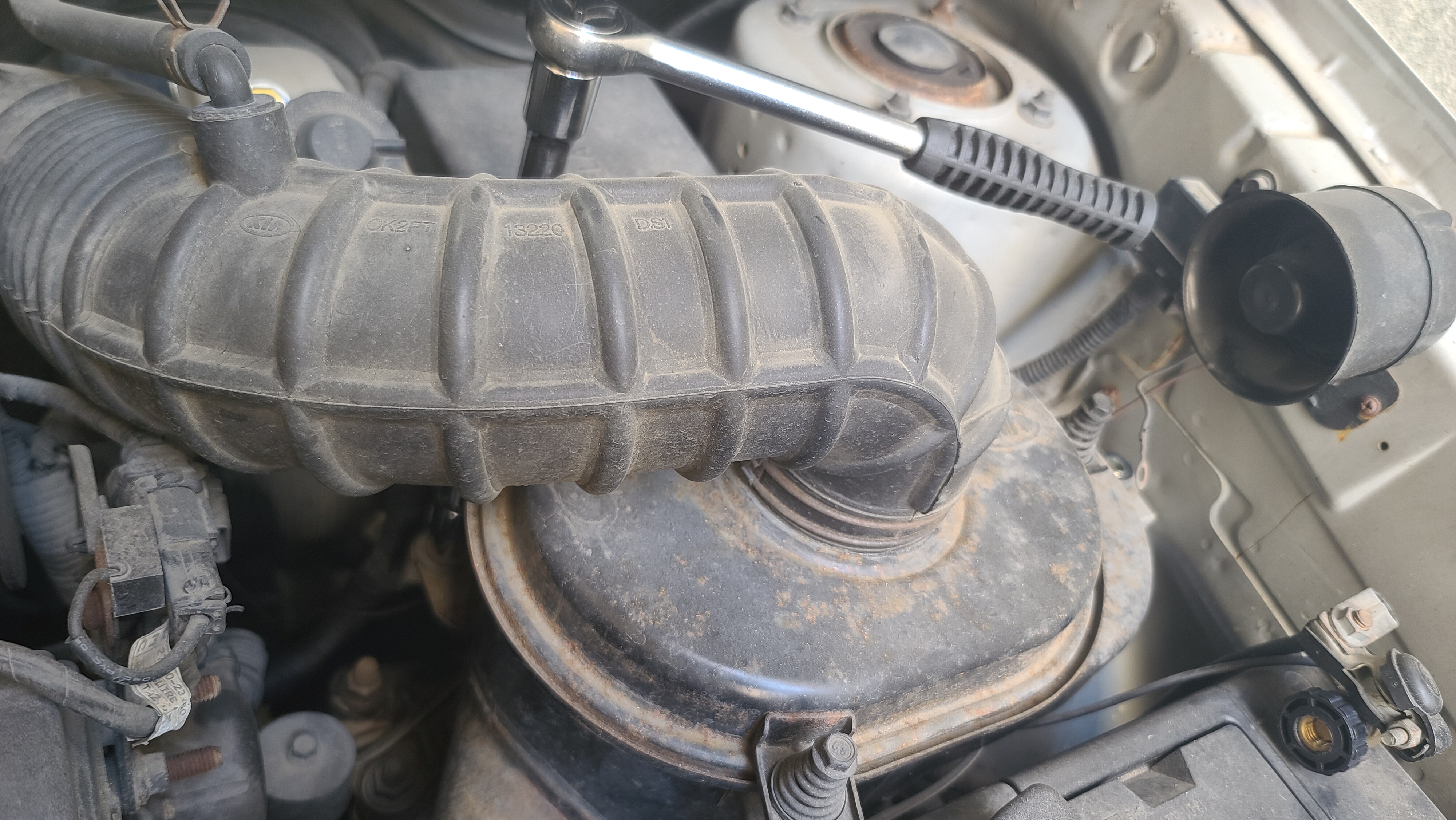 호스를 공기필터에 고정해주는 금속철사를 충분히 풀어준 후에