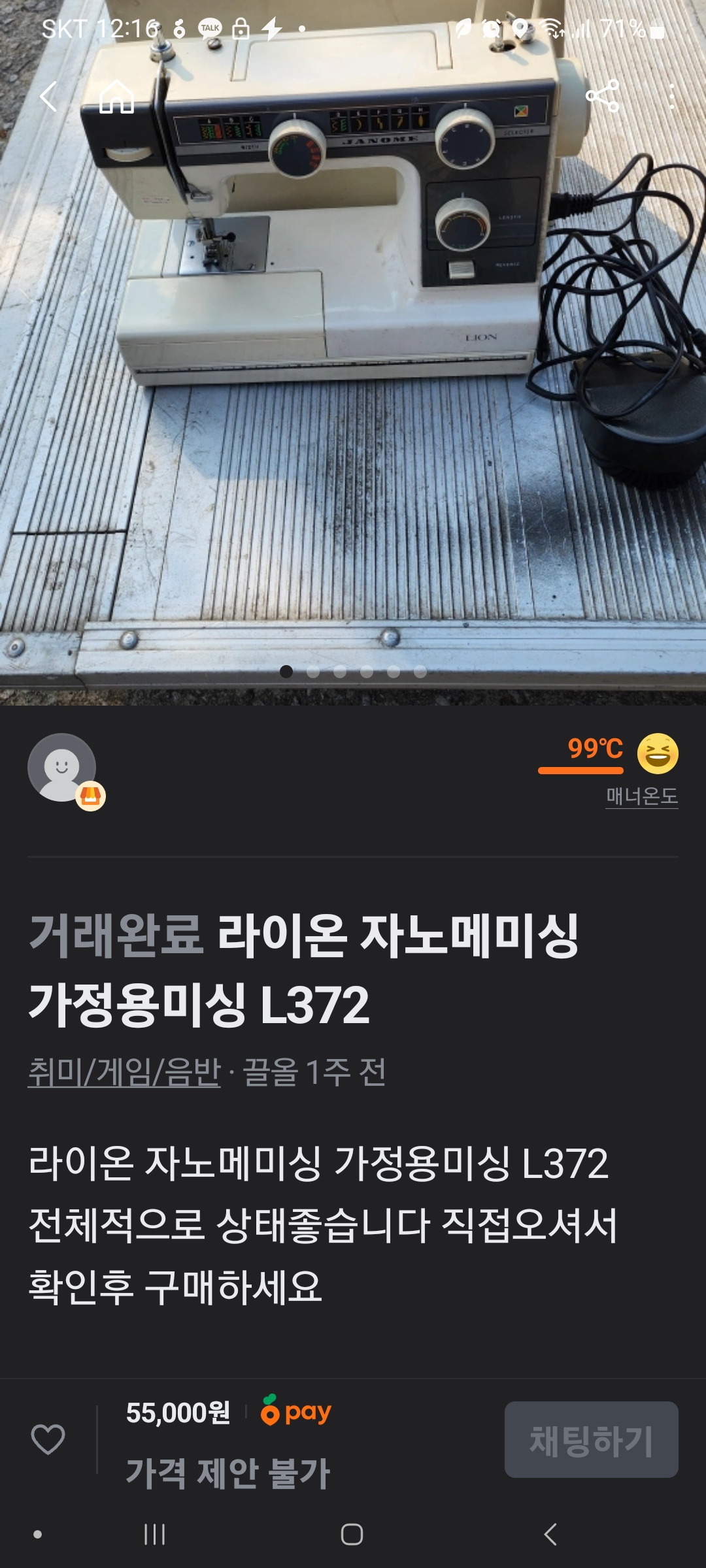 위 사진은 구입해 온 후에 스크린샷을 저장하여 거래완료로 되어 있습니다