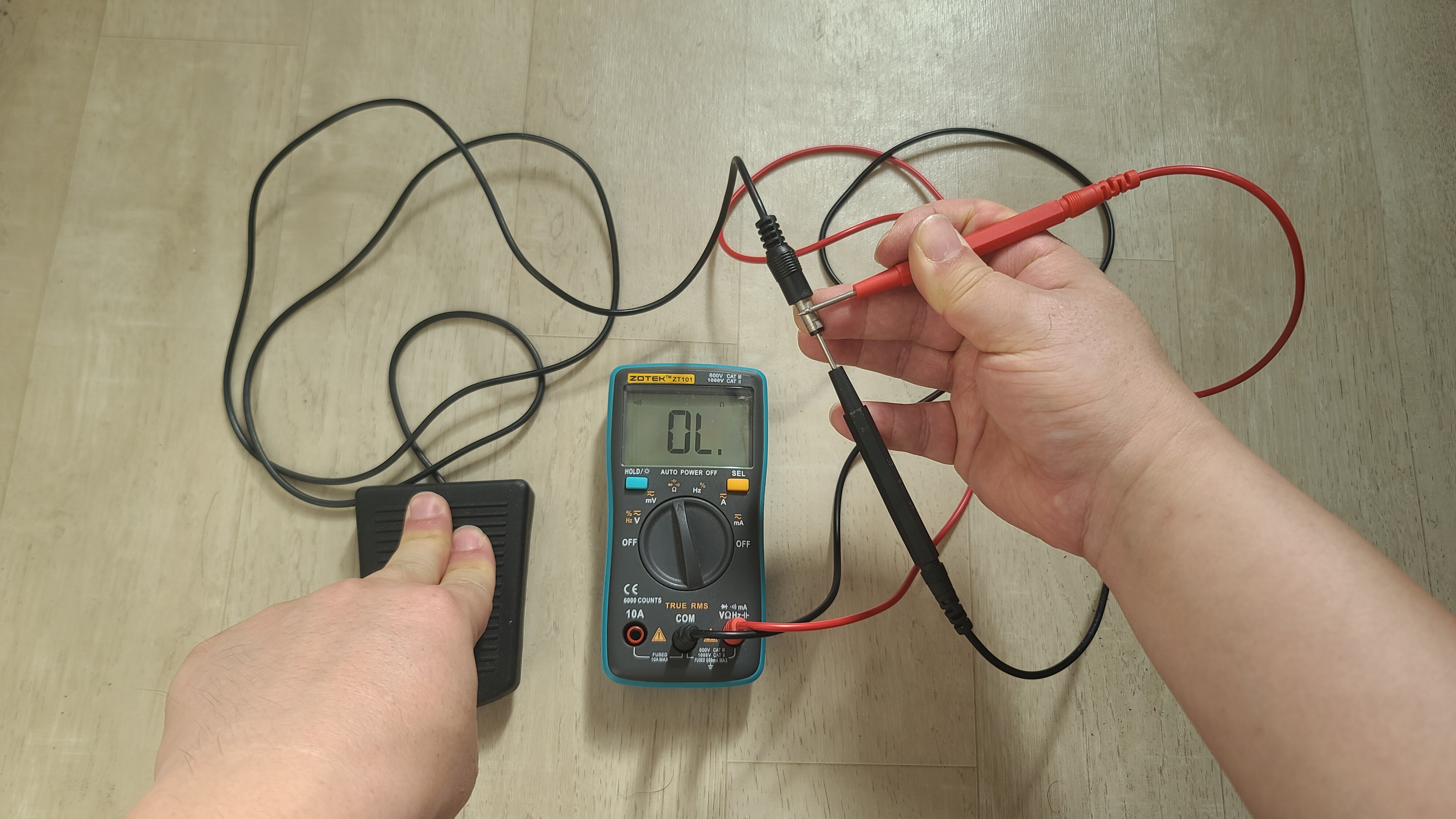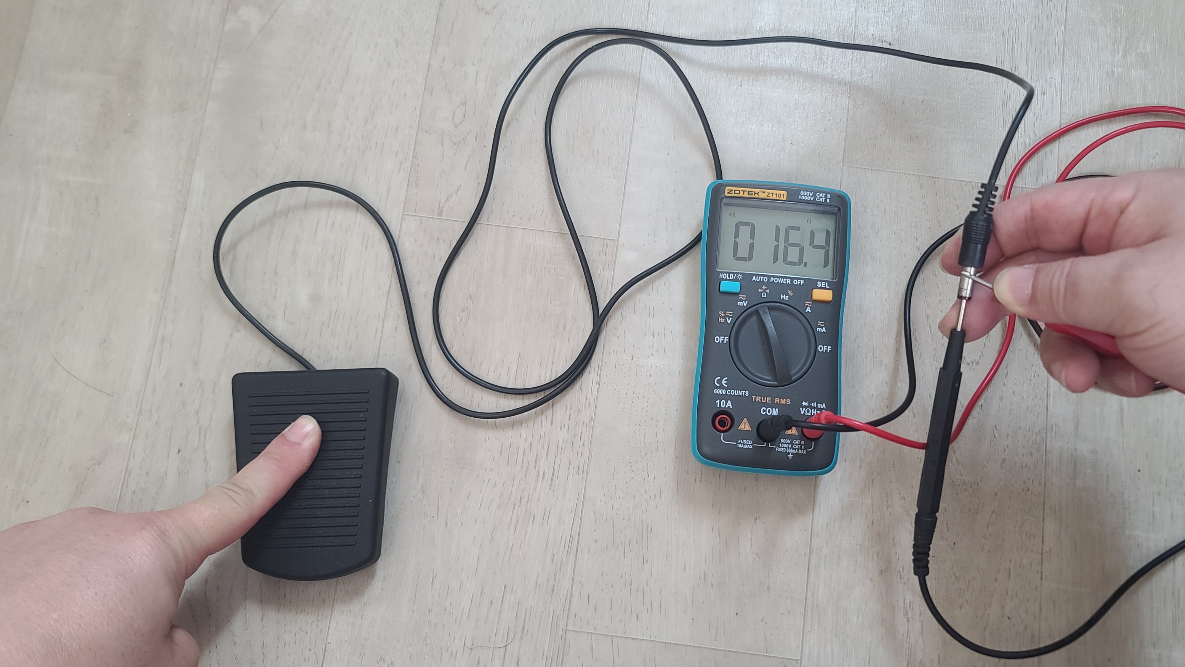조립한 후 패달을 누르고 멀티미터로 찍어보니