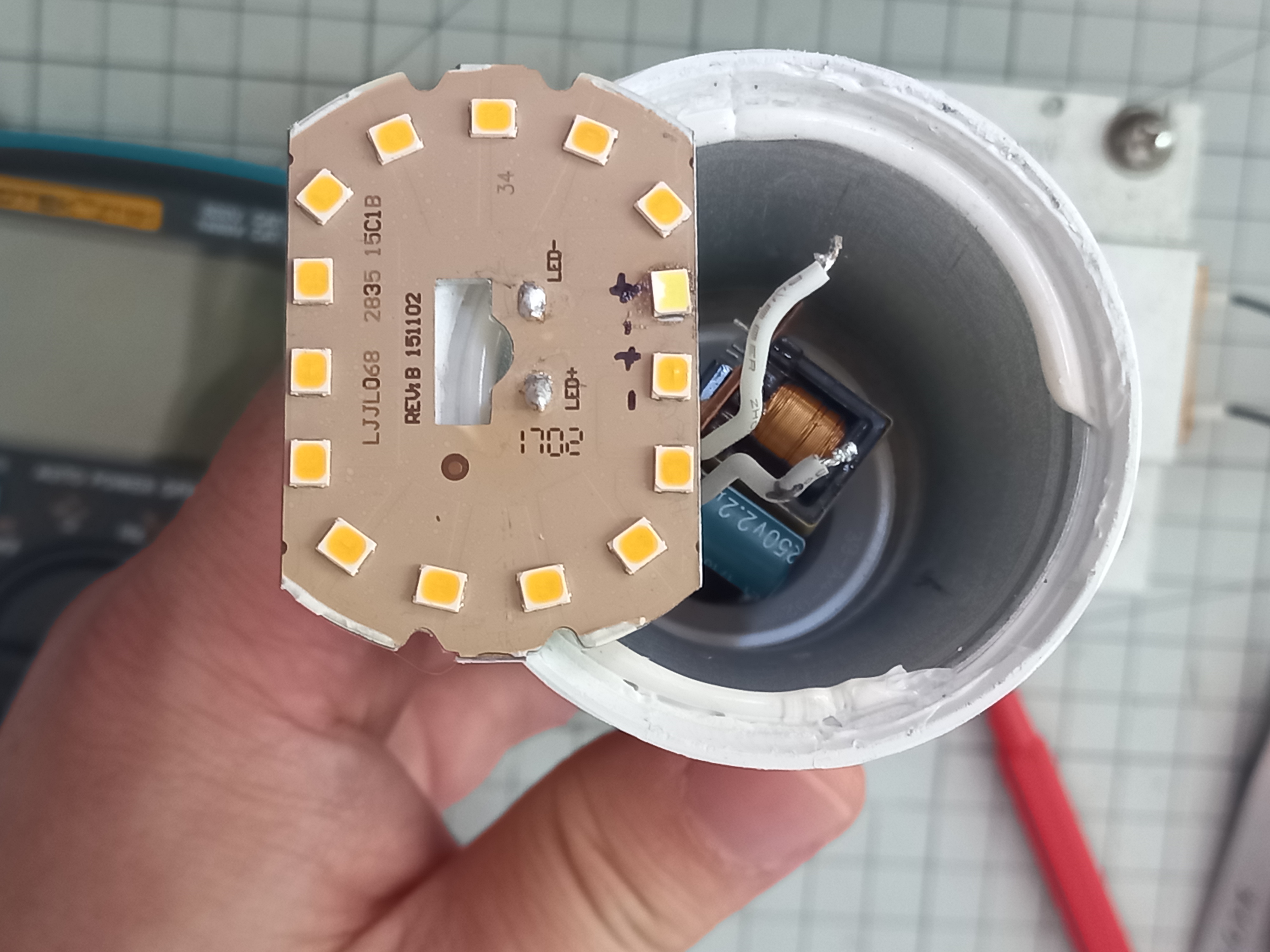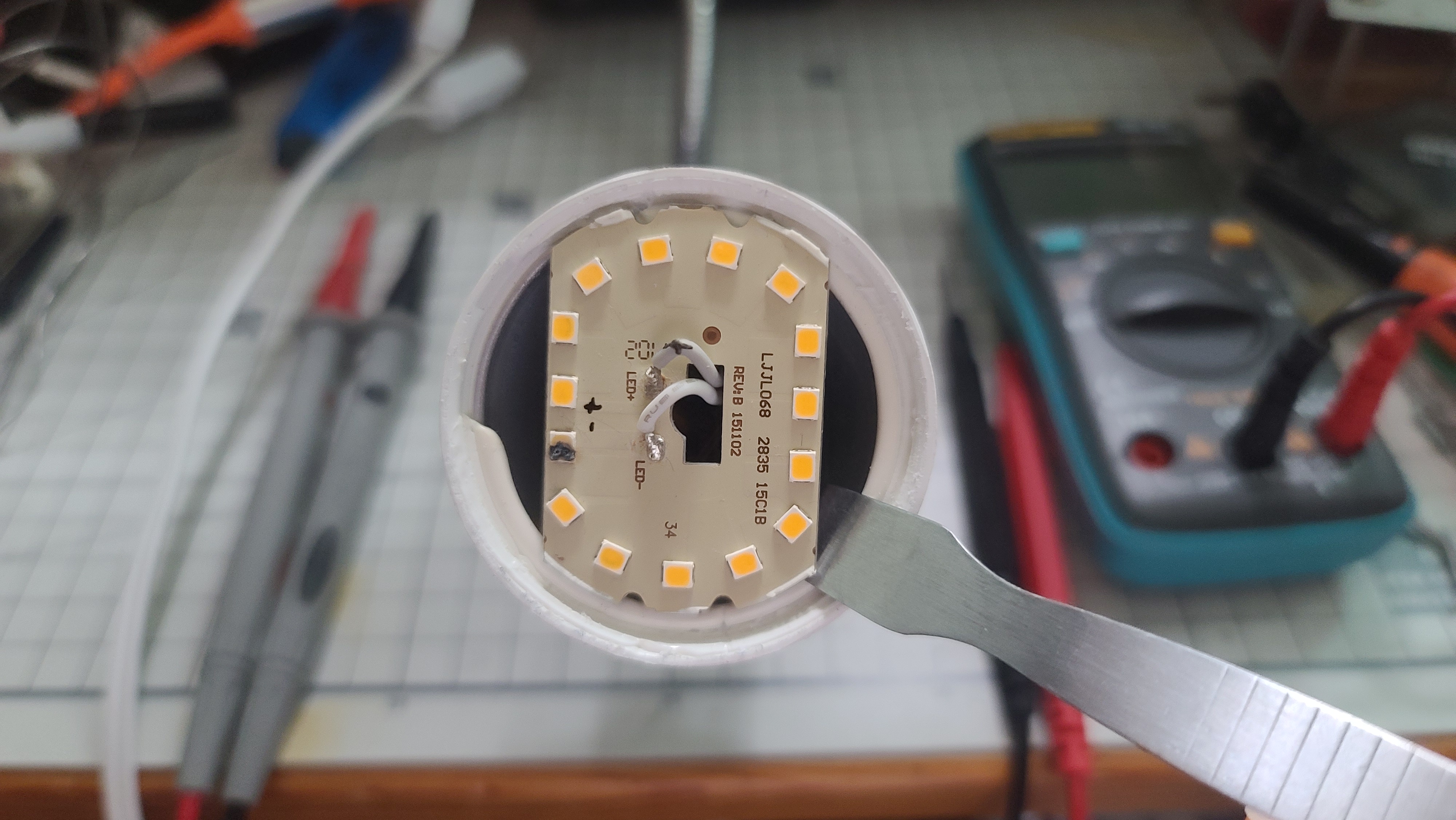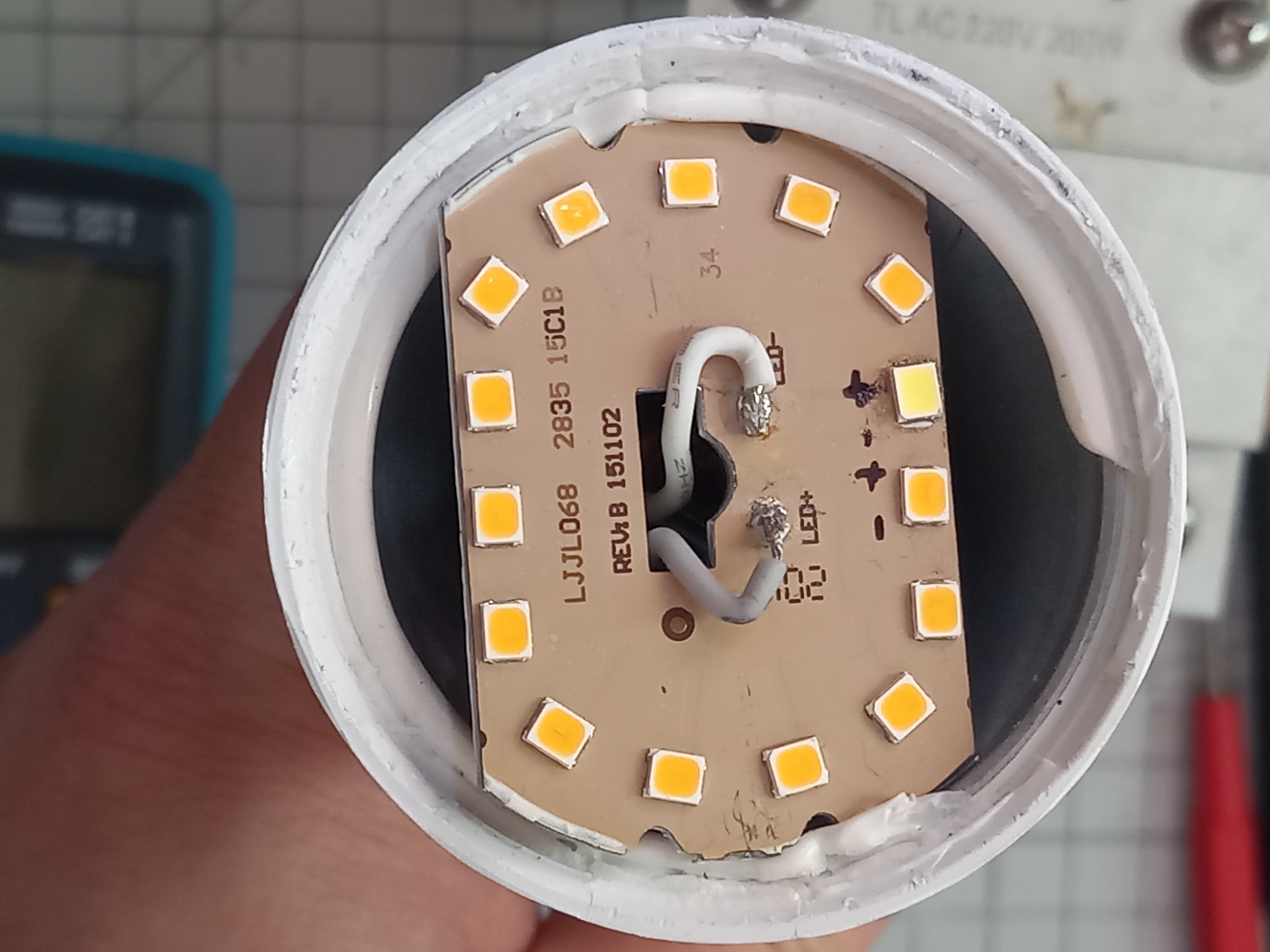 이제 PCB를 다시 전구 몸체에 붙일 차례입니다