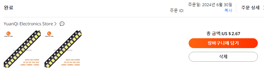 아래 스크린샷과 같이 0.5w와 1w를 각각 100개씩 2.67$에 구입하였습니다