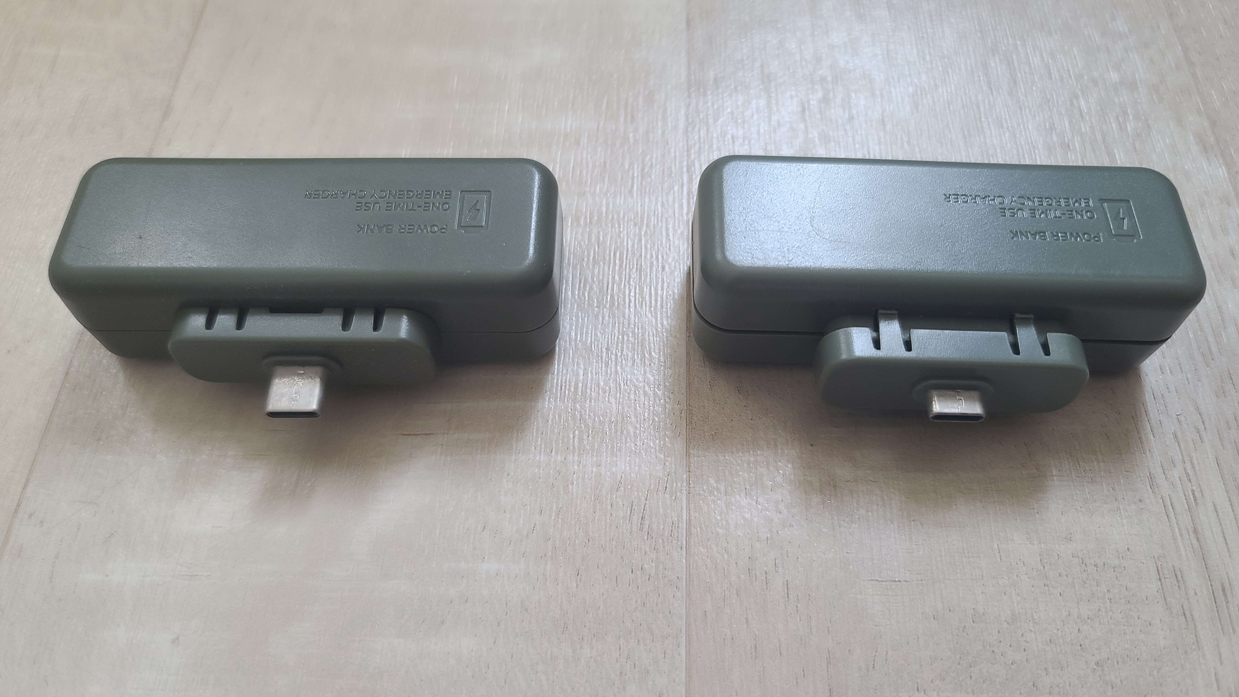 더 이상 사용할 수 없는 편의점 일회용 보조배터리 2개입니다