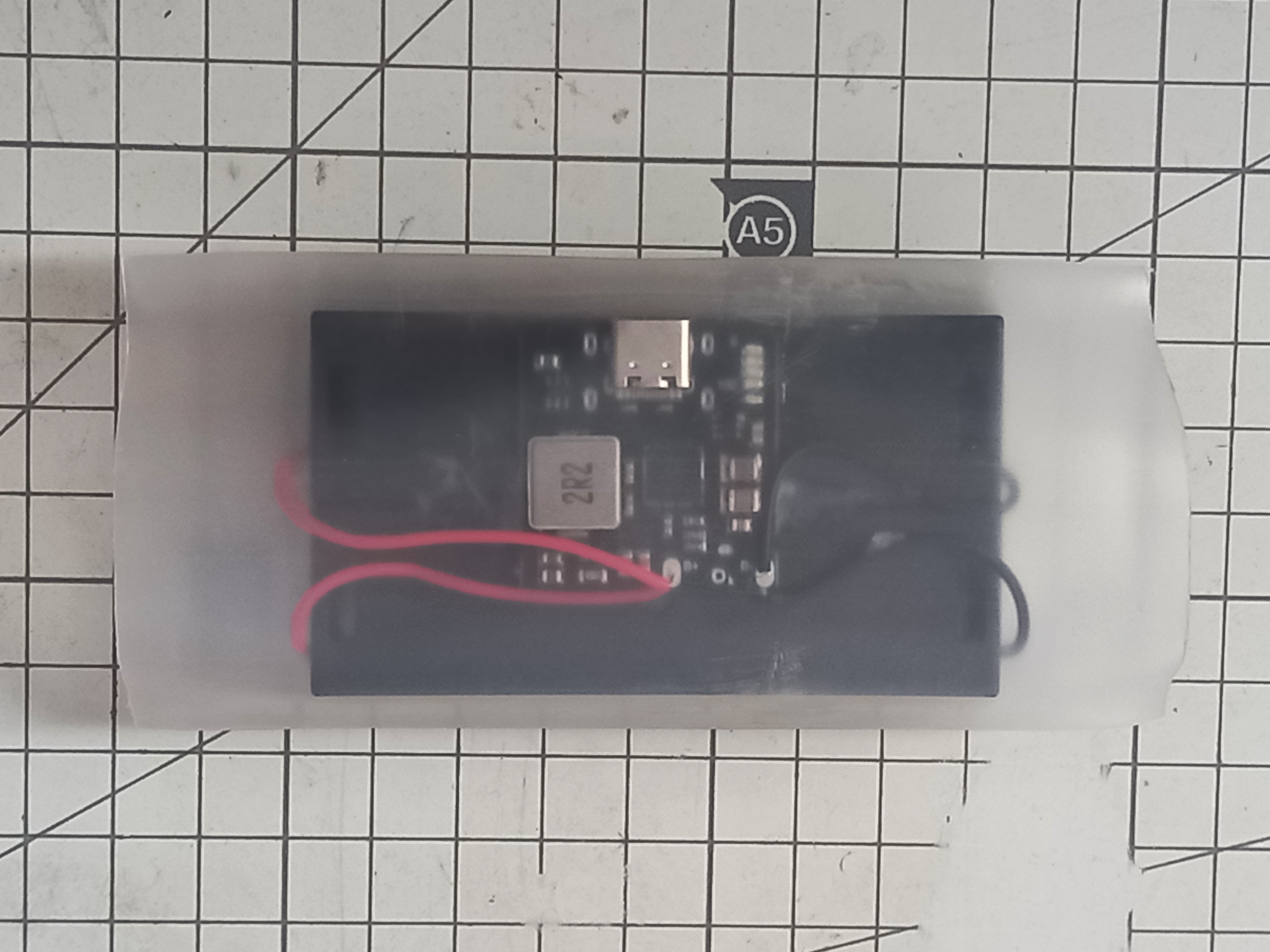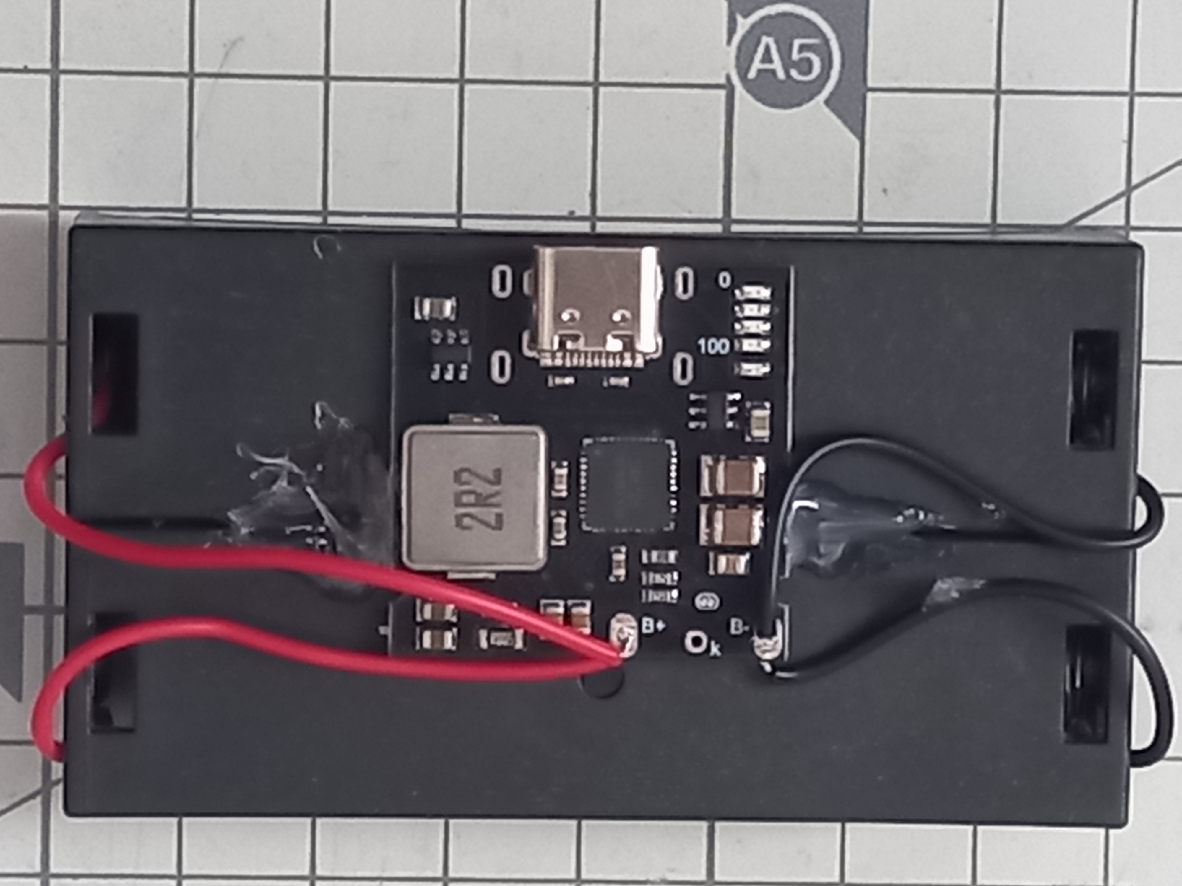 충전보드의 상태LED 5개(배터리 게이지 4개, 고속충전표시 1개)도 모두보이고 크기도 최소화 될 것 같습니다