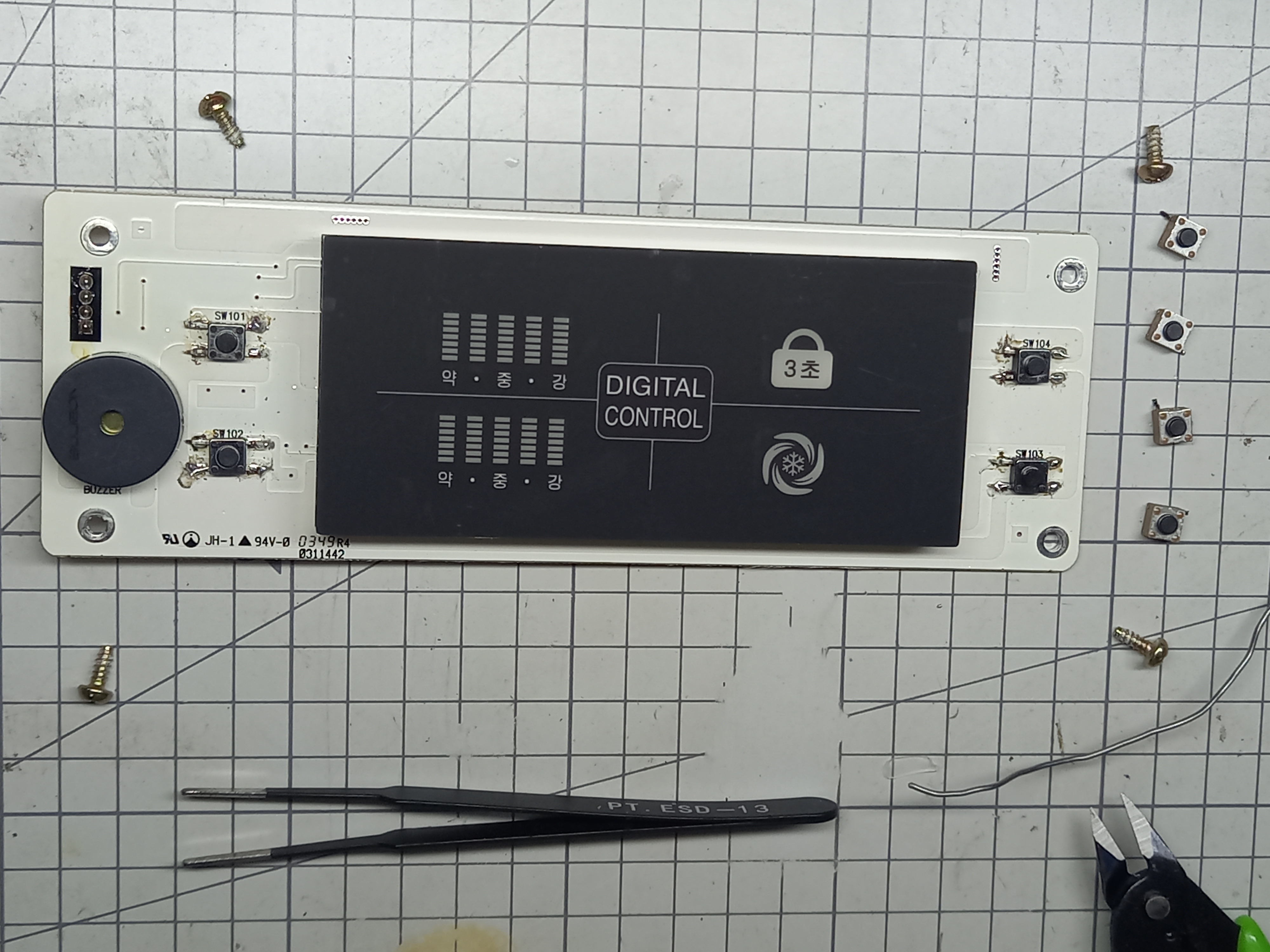 아래 사진과 같이 PCB에 새 스위치를 납땜해 주었습니다