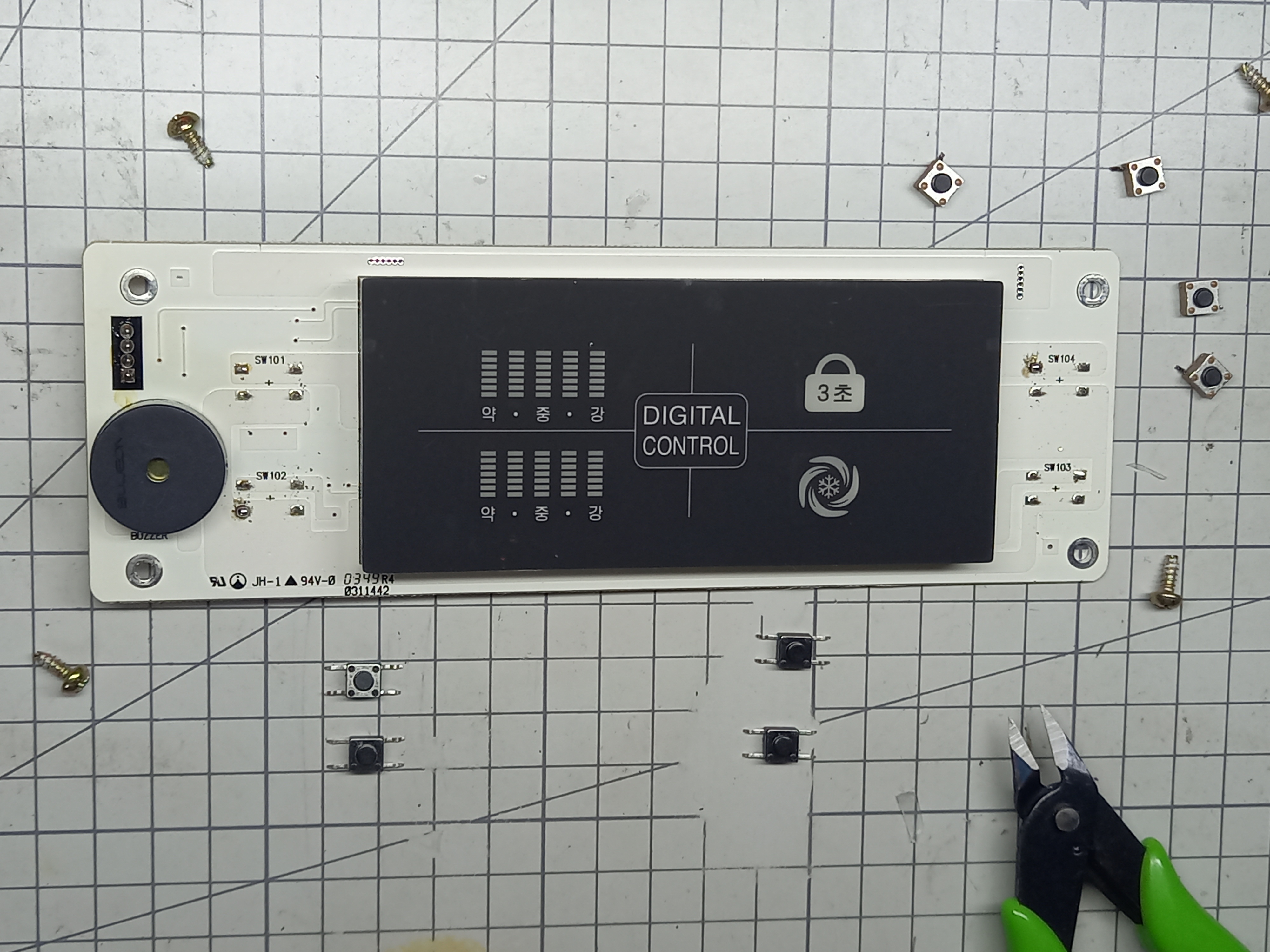 아래 사진과 같이 노후된 스위치를 PCB에서 떼어냈습니다