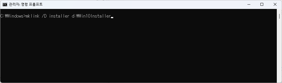 4번의 관리자 cmd 상에서 아래 명령을 입력해서 c:\Windows\Installer 가상폴더를 D:\Win10Installer 에 연결한다