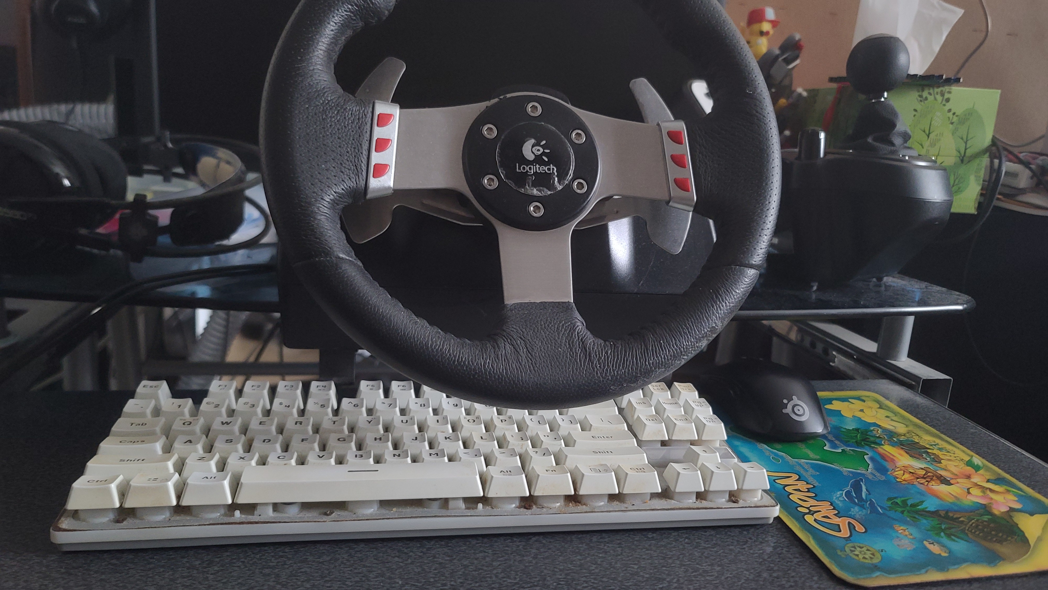 Logitech G27 레이싱휠을 컴퓨터 책상에 장착해두고 사용하다 보니