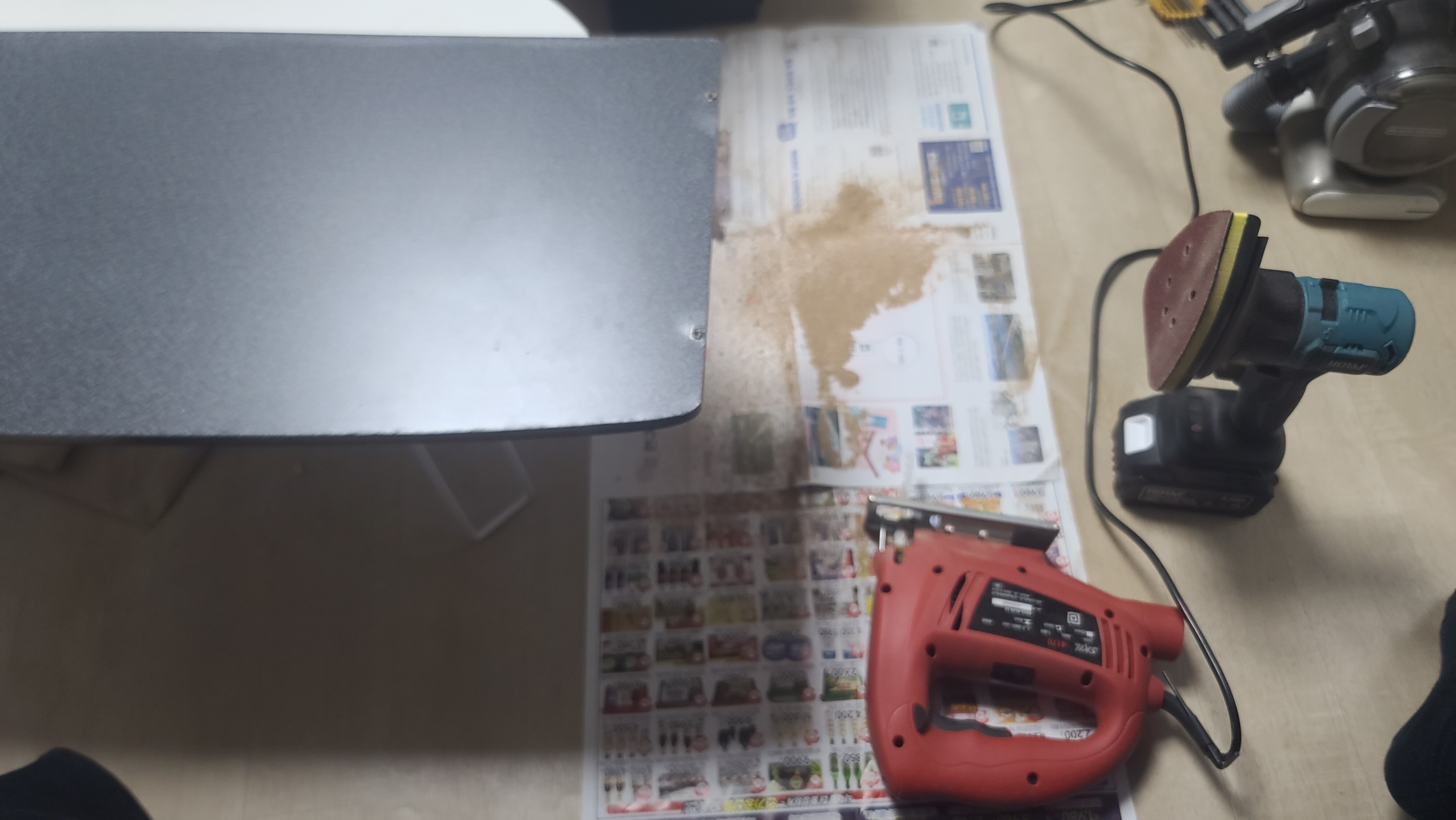 구입해 두었던 멀티전동공구에서 전동사포부품을 장착하여 사용해서 다듬어 주고