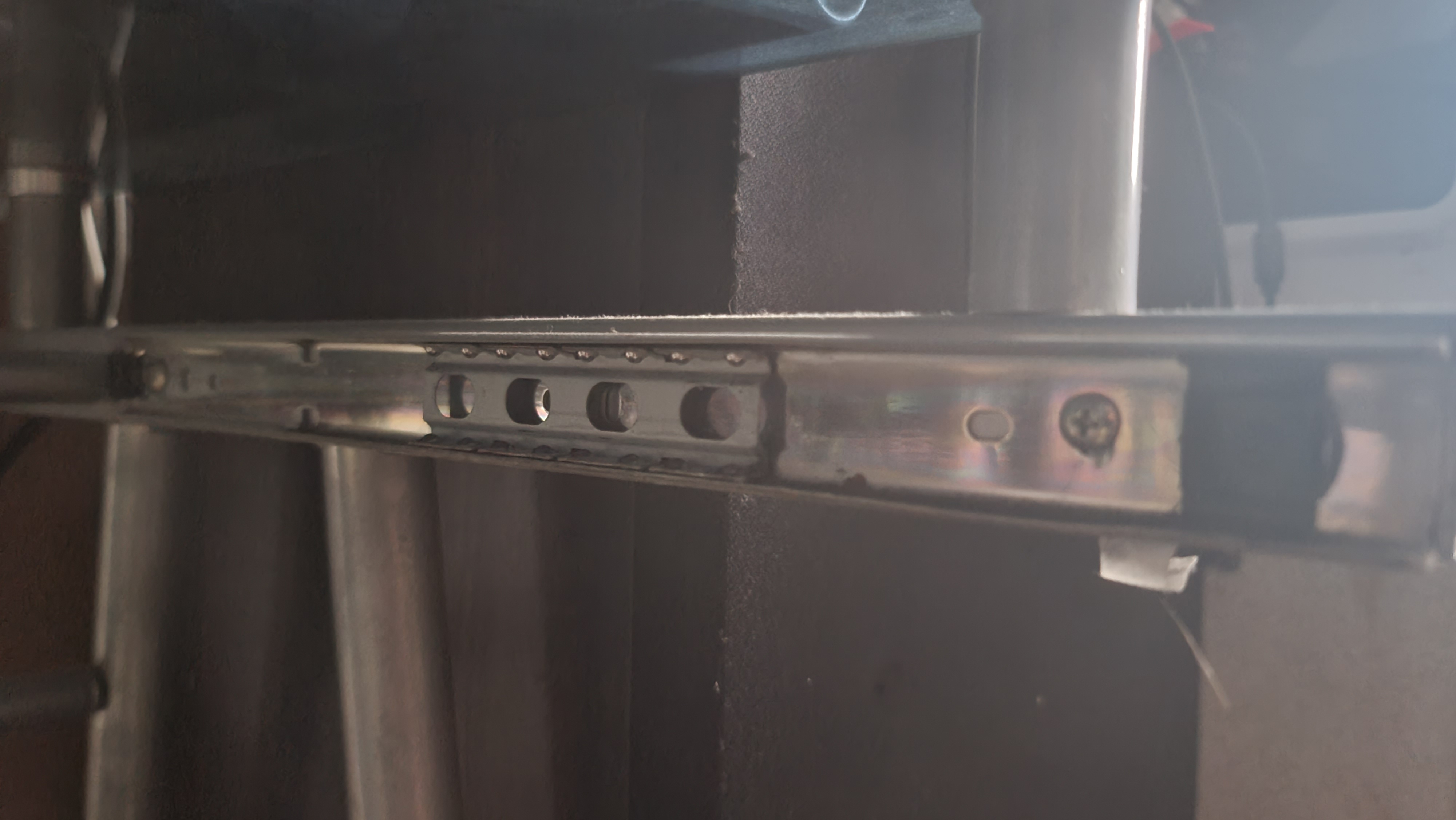 다행히 위 사진의 위쪽 2단 레일의 2개 나사 위치는