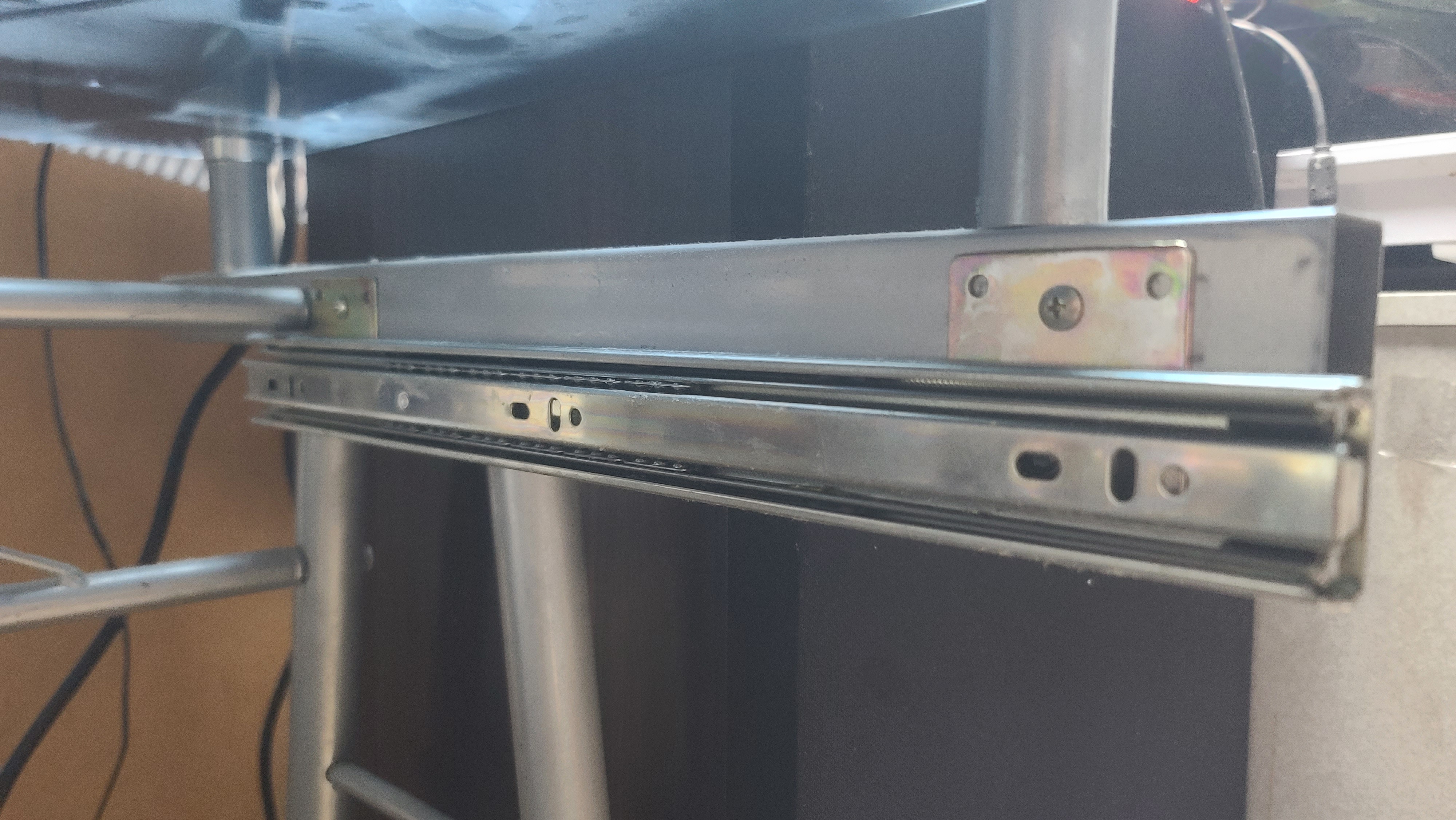 3단 레일이 5cm 정도 길어서 책상 뒤쪽의 기둥과 간섭이 있어서