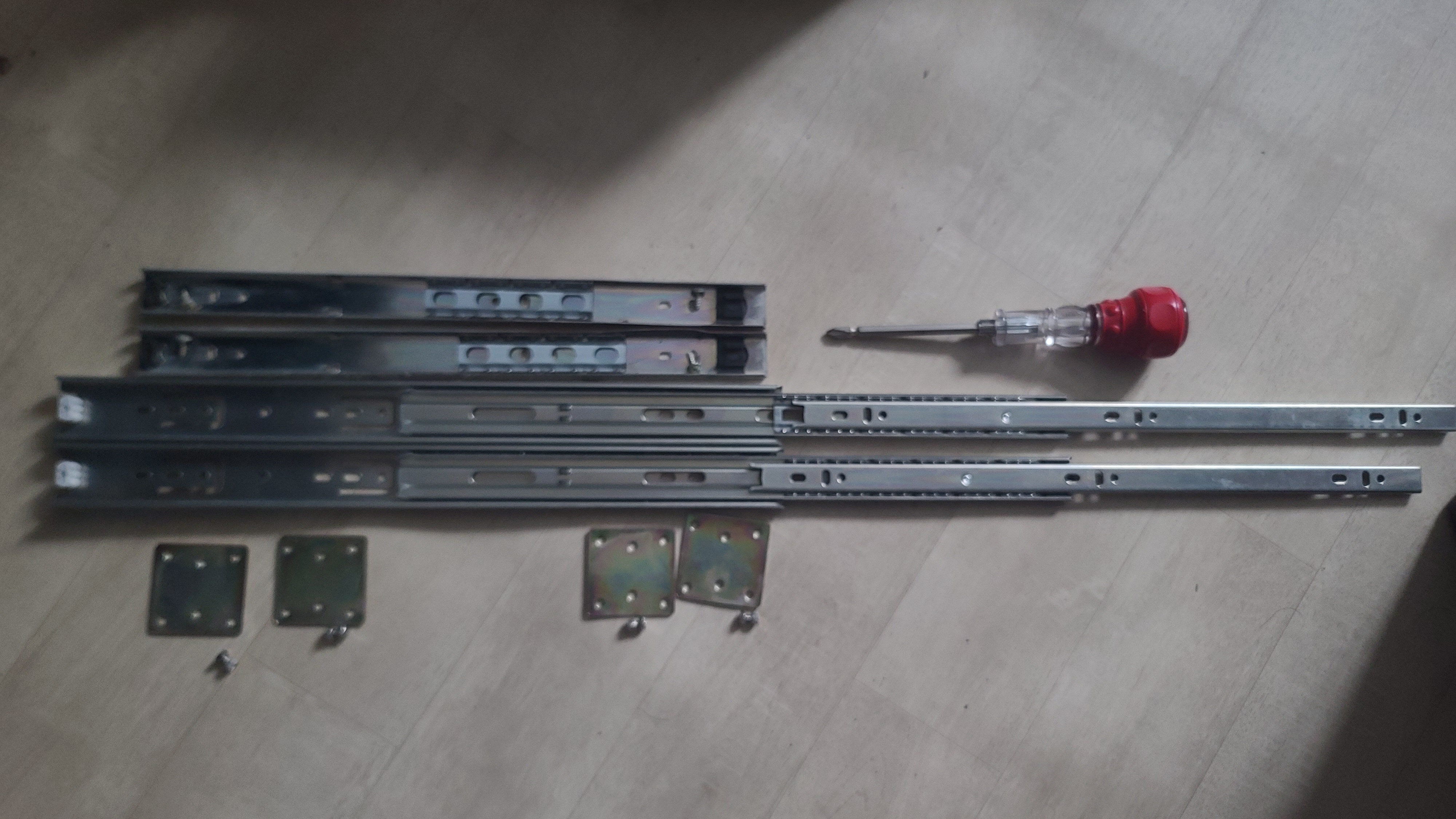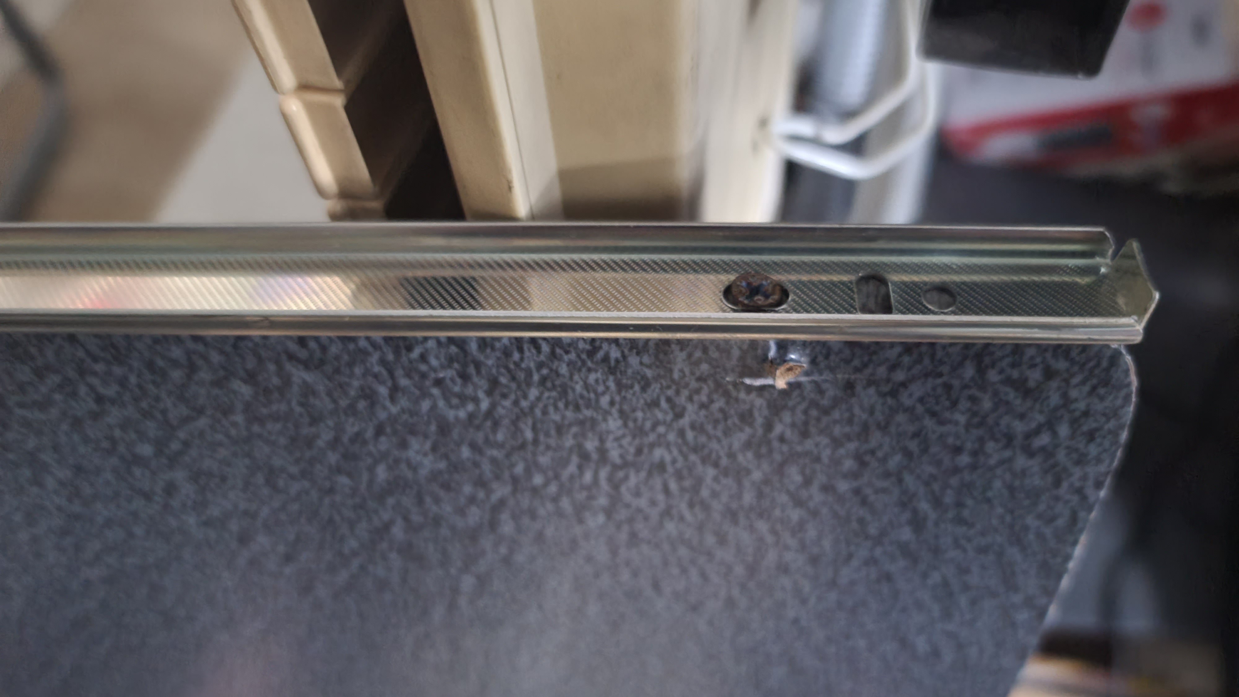다행히 위 사진의 위쪽 2단 레일의 2개 나사 위치는