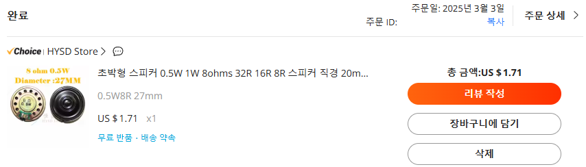 27mm 8옴 0.5W 를 아래 스크린 샷과 같이 1.71$에