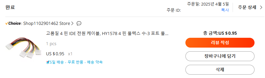 아래 사진의 케이블을 알리 천원마트에서 아래 스크린샷과 같이 0.95$에 구입하였습니다
