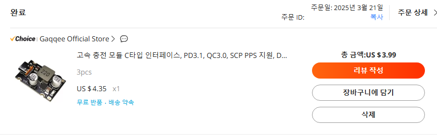 3개의 8~30V DC용 PD3.1 USB-C 충전보드를 3.99$에 구입하였습니다