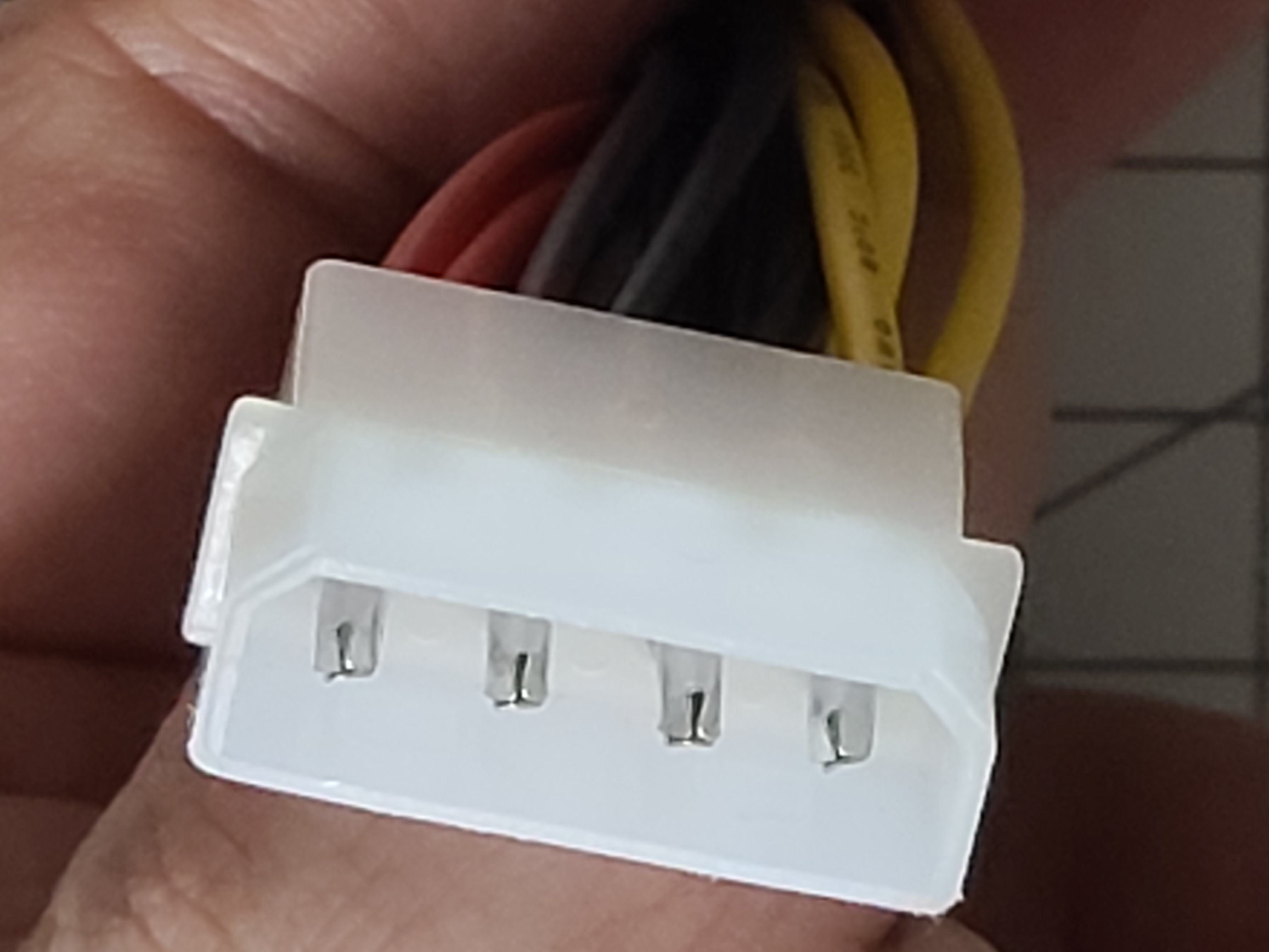 위 사진에서 왼쪽 빨간색 전선은 5V, 가운데 검은색 전선 2개는 GND, 오른쪽 노란색 전선은 12V 입니다
