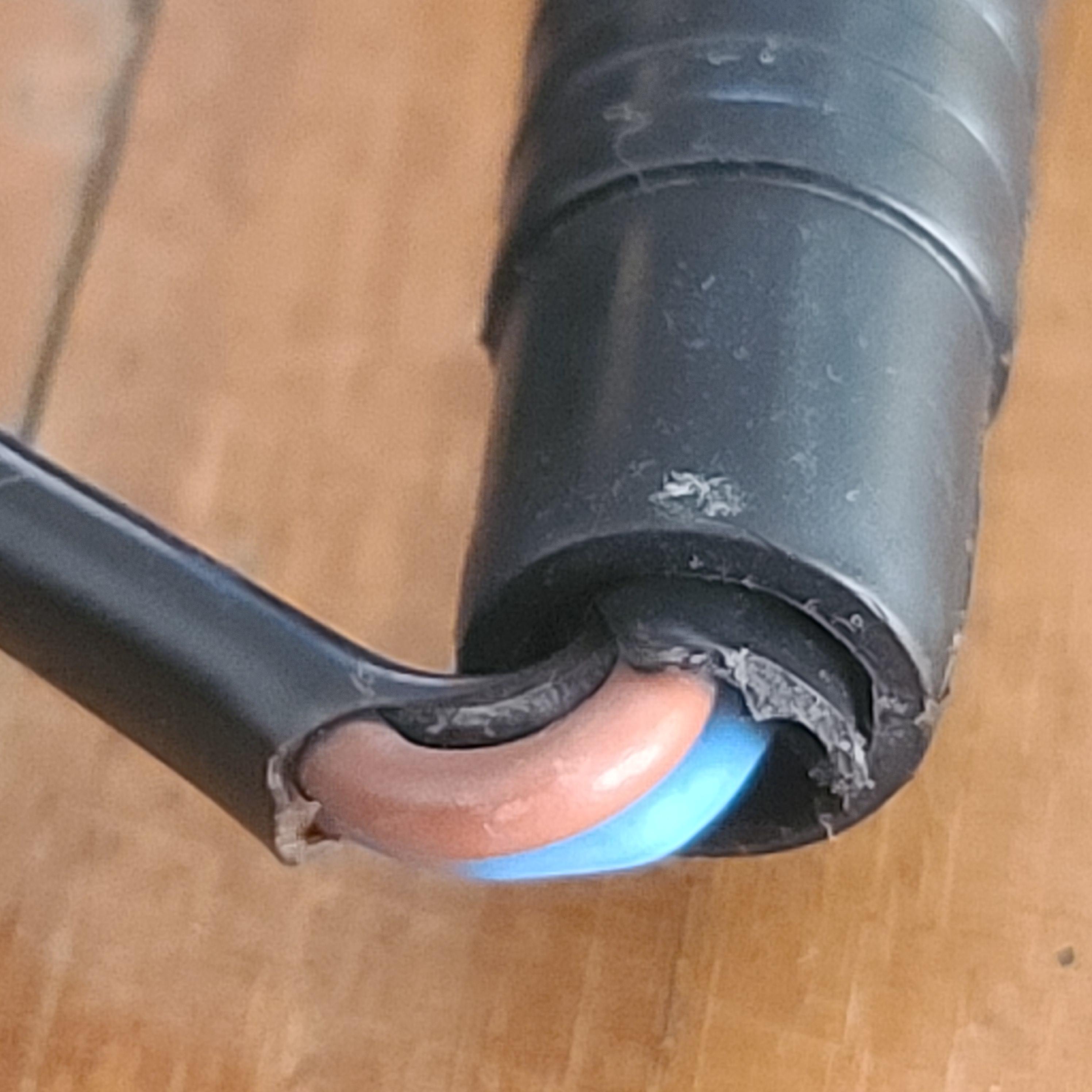 아래 사진과 확대해 보면 안쪽 피복에 이상은 보이지 않습니다
