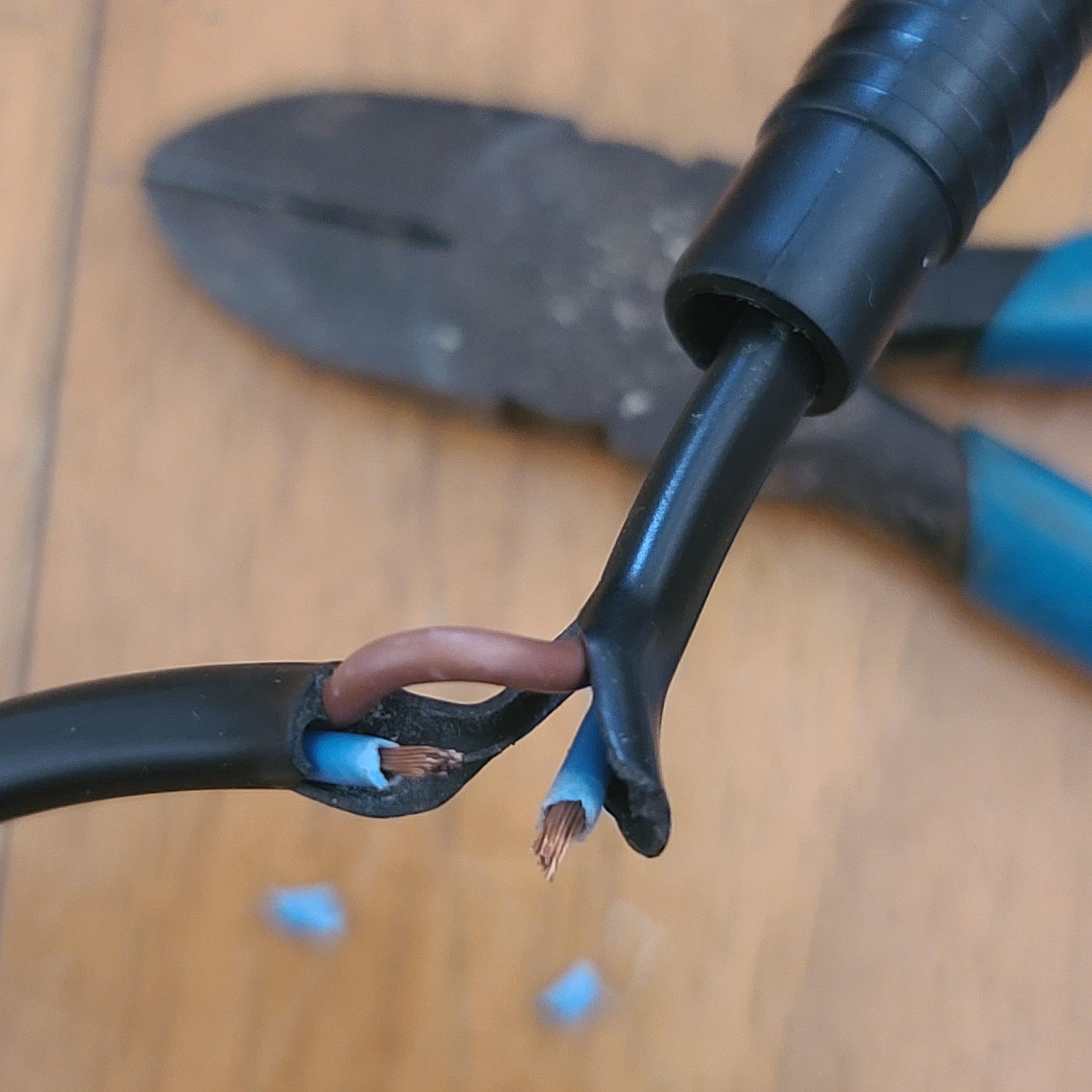 아래 사진의 오른쪽 하단을 보면 전선 피복이 벗겨져 있습니다